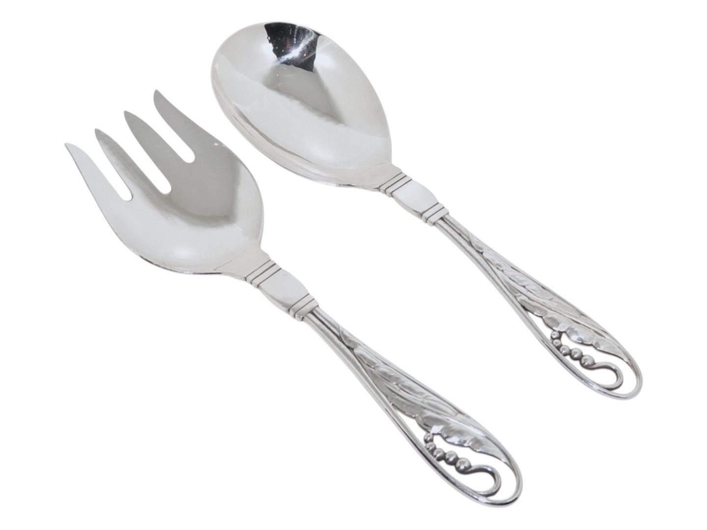 Georg Jensen Sterling sølv, ornamental stort salatsæt.Designnummer 42.