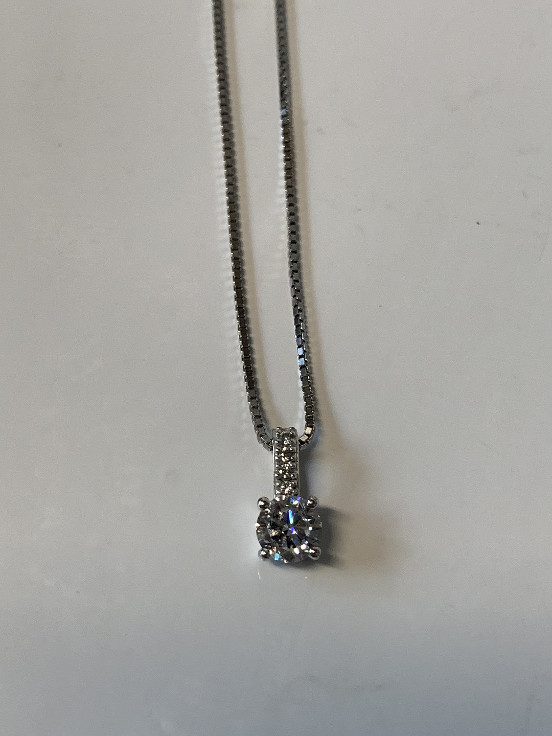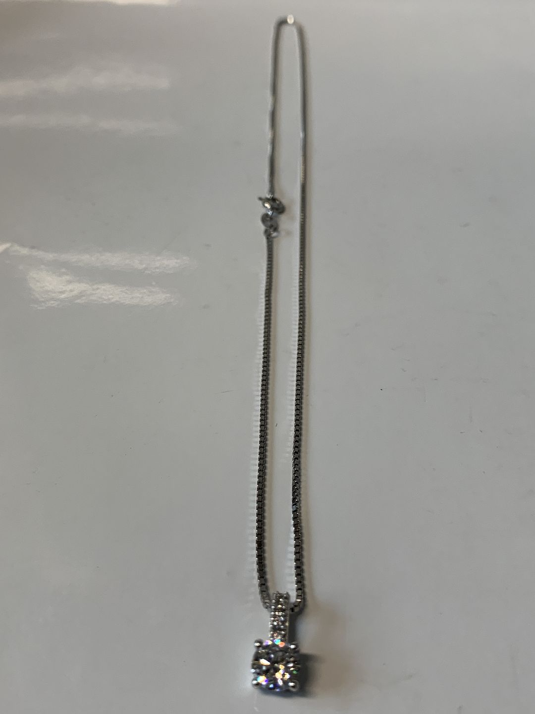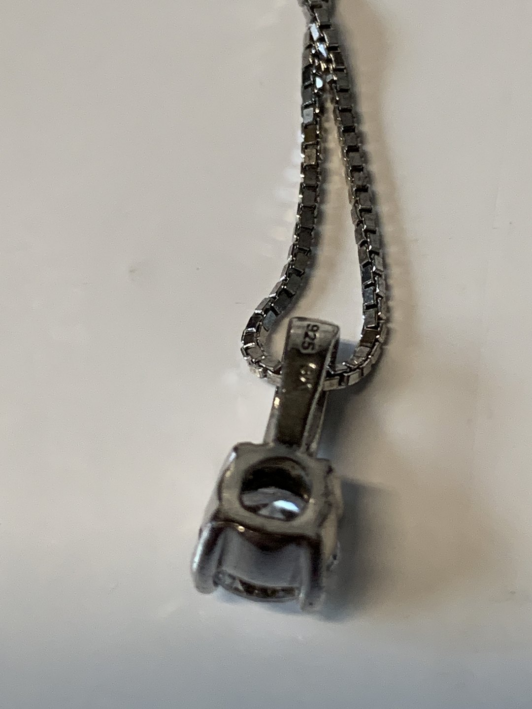 Smuk halskæde i sølv, med smukt vedhæng med flotte detaljer.Vedhænget er udformet med Klare sten. Det er et smukt smykke, der passer til både hverdag og fest.
