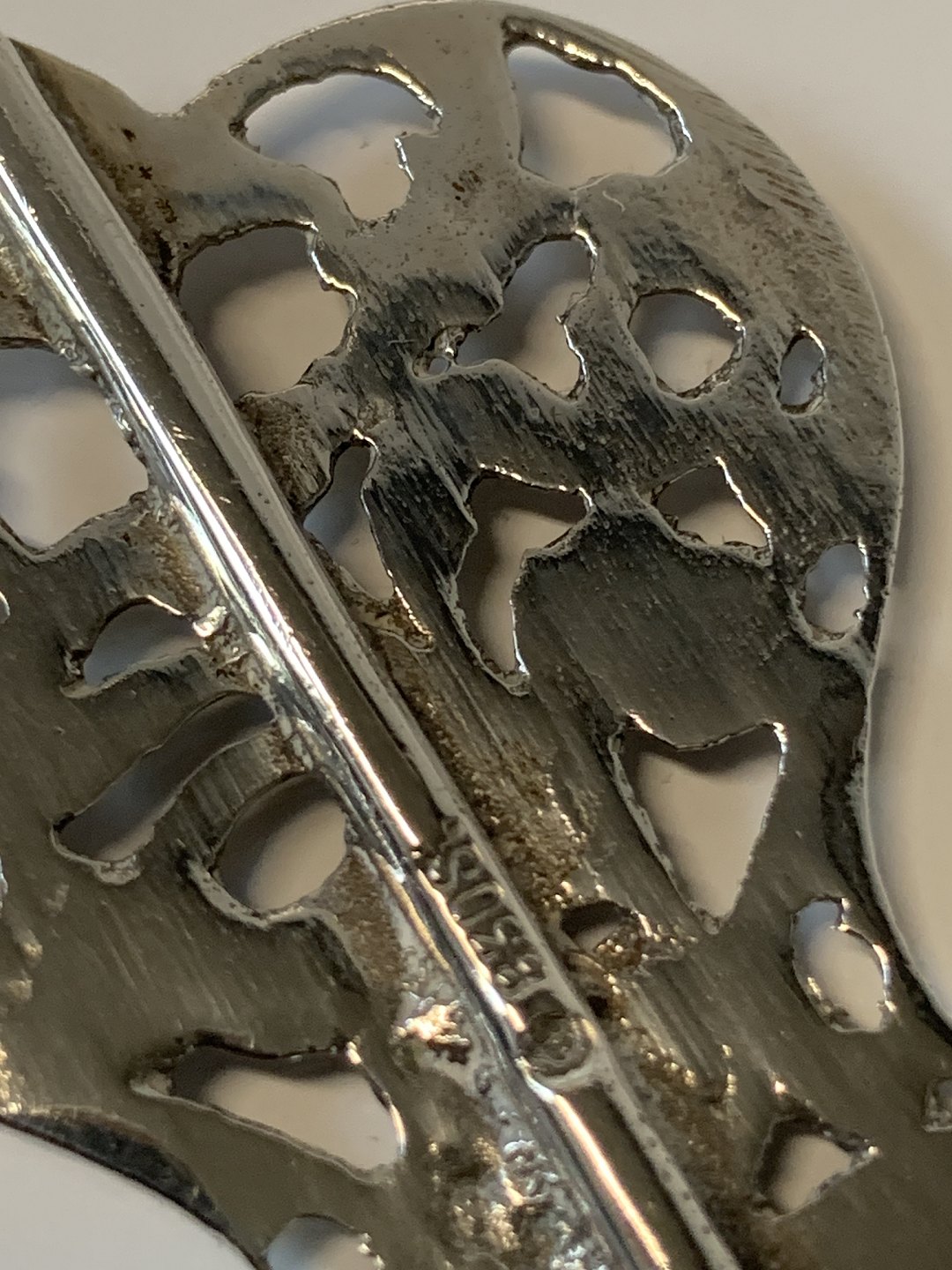 Tesi i 830 sølv dekoreret med flot mønstreLængde 11 cm.