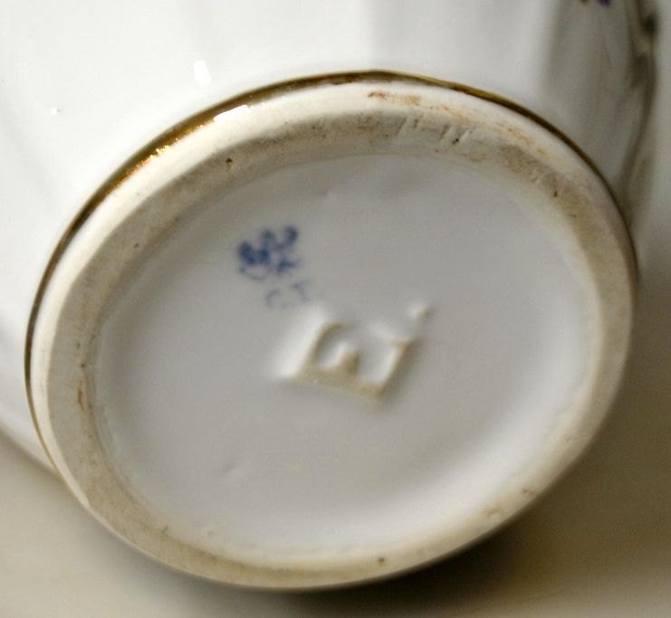 Löwe schokoladenkanne aus Porzellan, CT Altwasser, 19. Jahrhundert. Deutschland. Blumendekor in Transfertechnik. Gestempelt. Mit Vergoldung. Ohne Deckel. H: 24 cm.Bestellnummer: 28278