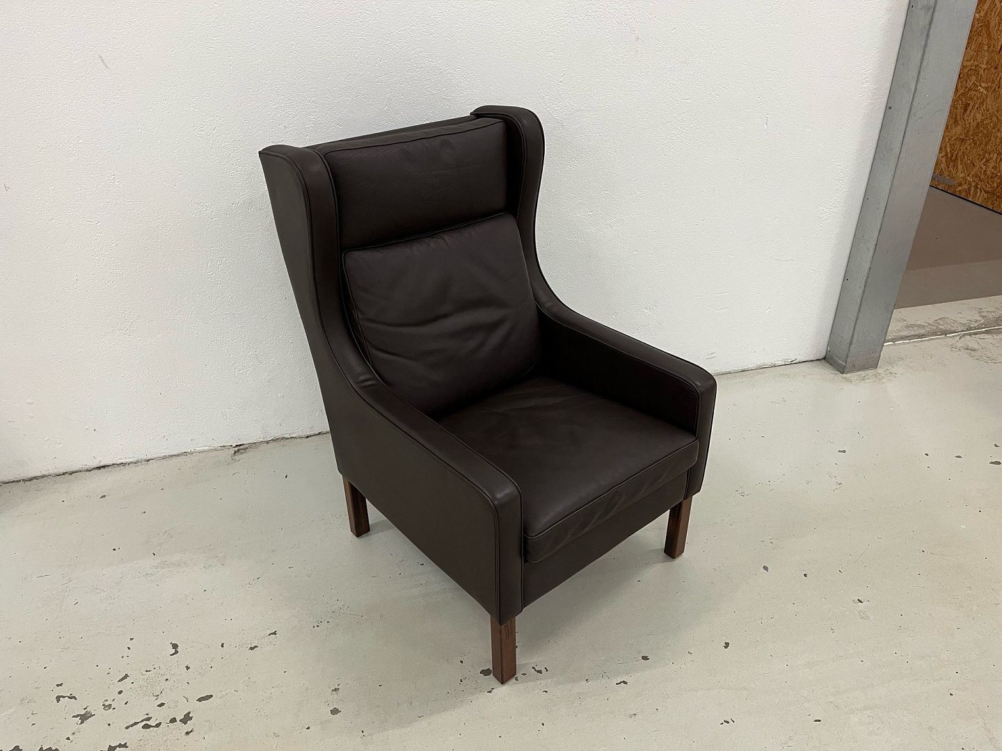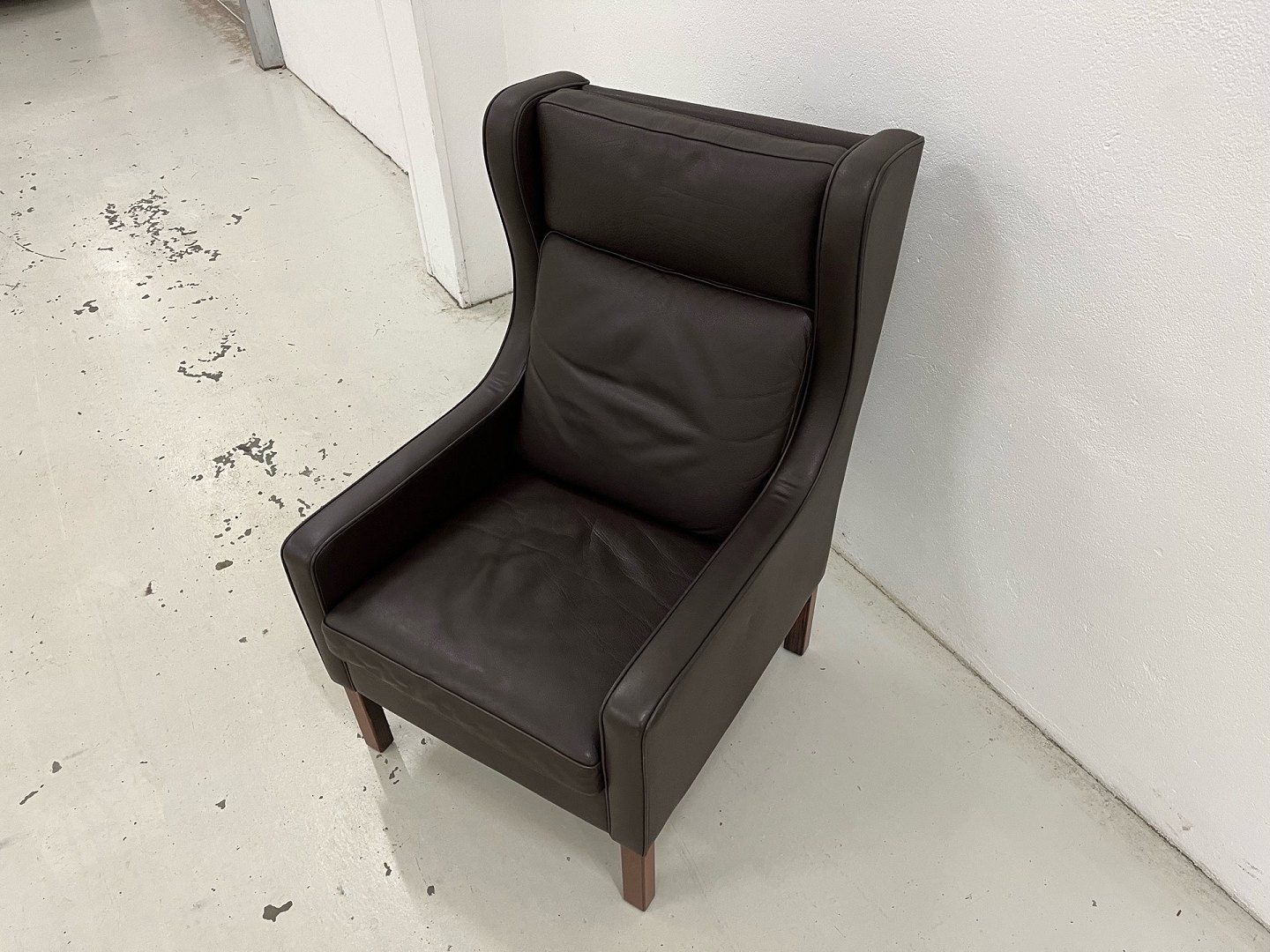 Mogens Hansen MH195 øreklapstol i Dark Brown mammut læder og med ben i bejdset Eg.Nypris 22.445,-Stolen er netop afrenset og læderbehandlet og står i virkelig fin stand.