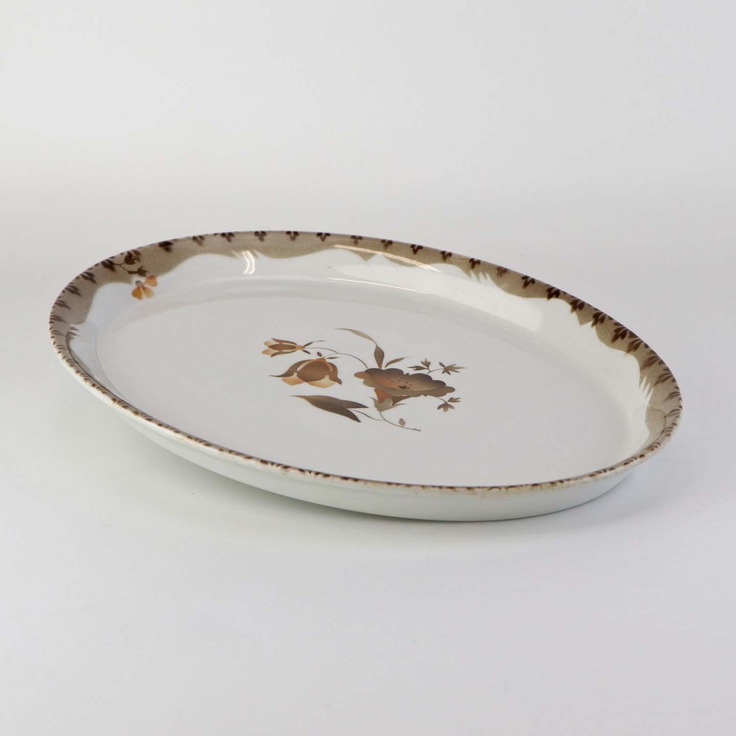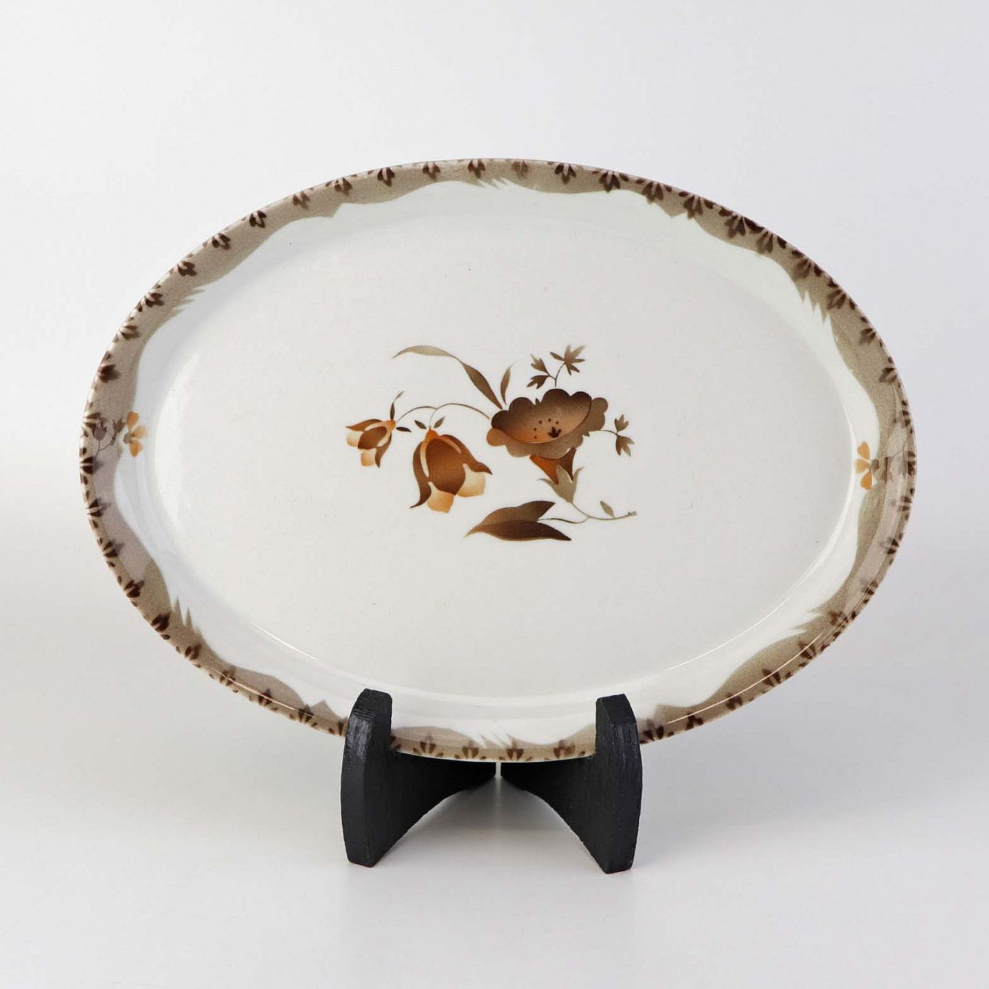 Lavt ovalt fad i fajance fra stellet Convolvulus Snerle.Formgiver Nils Thorsson, Nic. Tidemand og Oluf Jensen