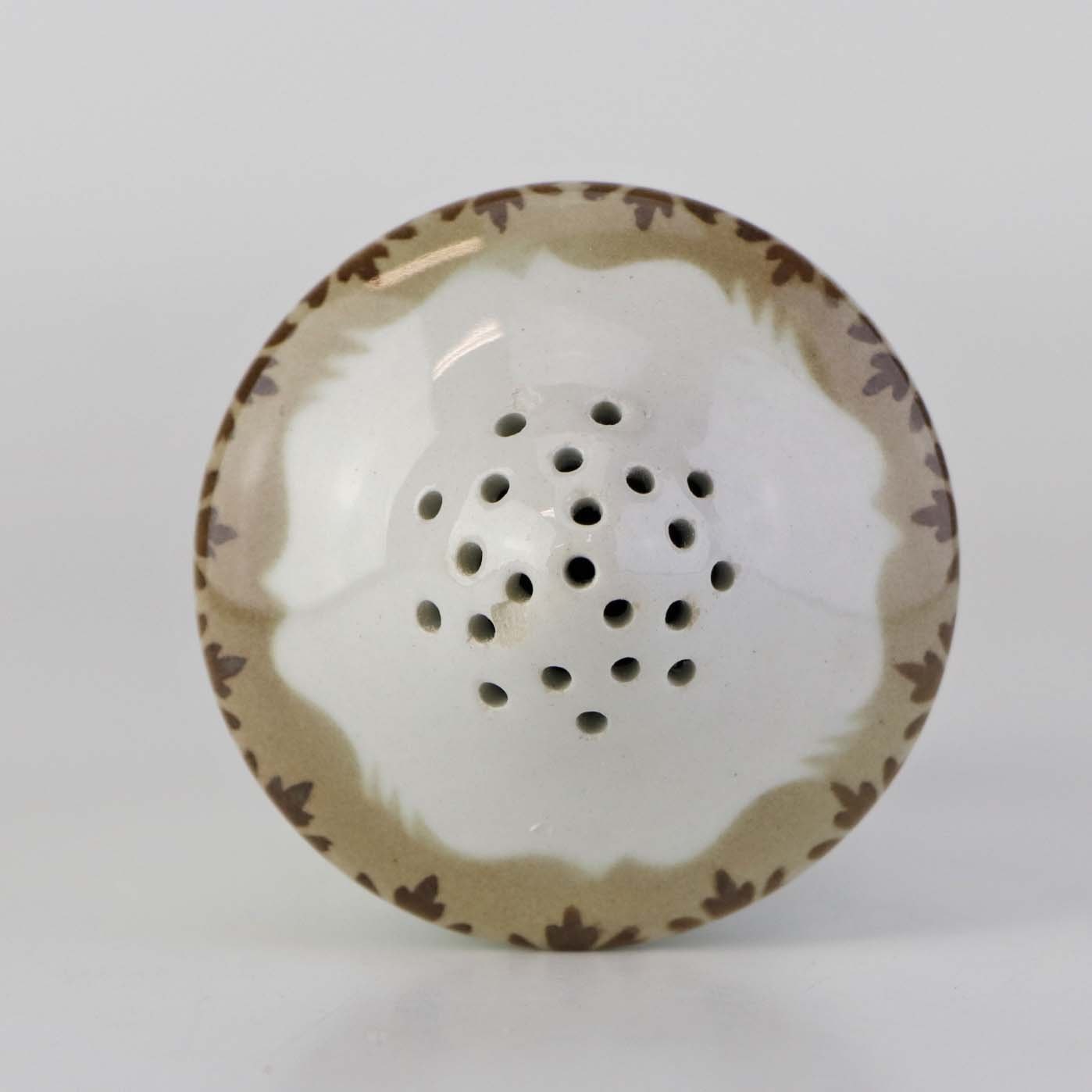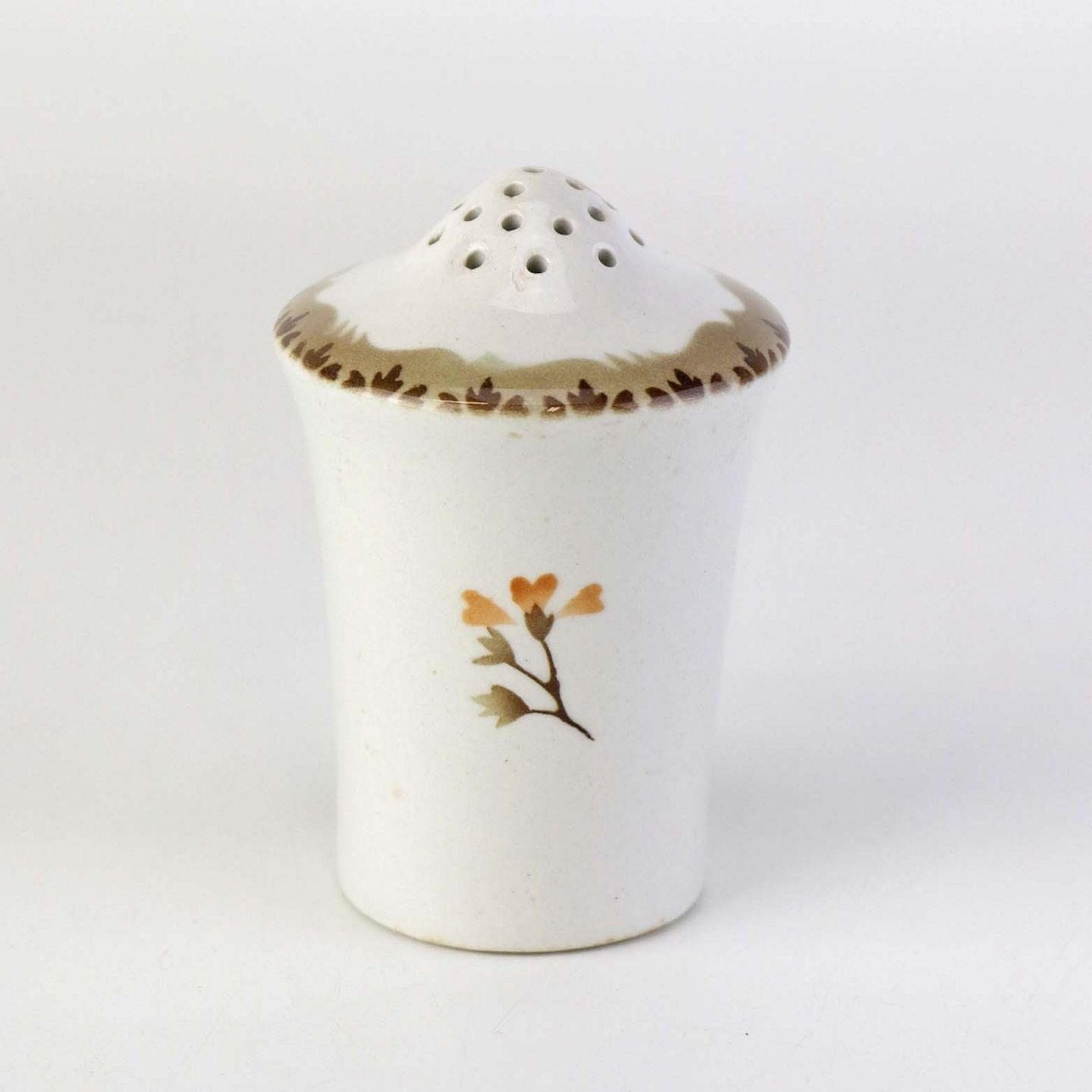 Salt strø i fajance med korkprop fra stellet Convolvulus Snerle.Formgiver Nils Thorsson, Nic. Tidemand og Oluf Jensen