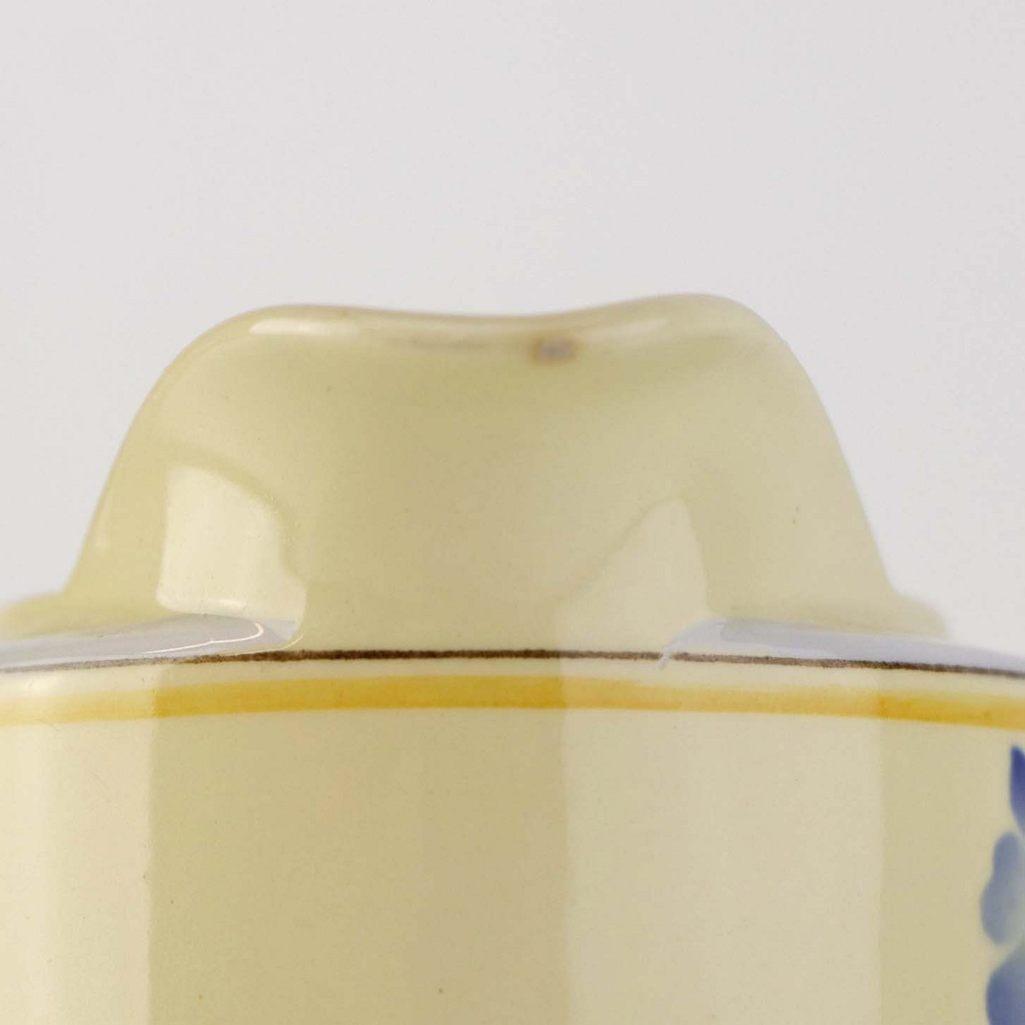 Fremstår med mørkning under glasuren på tudens underside.