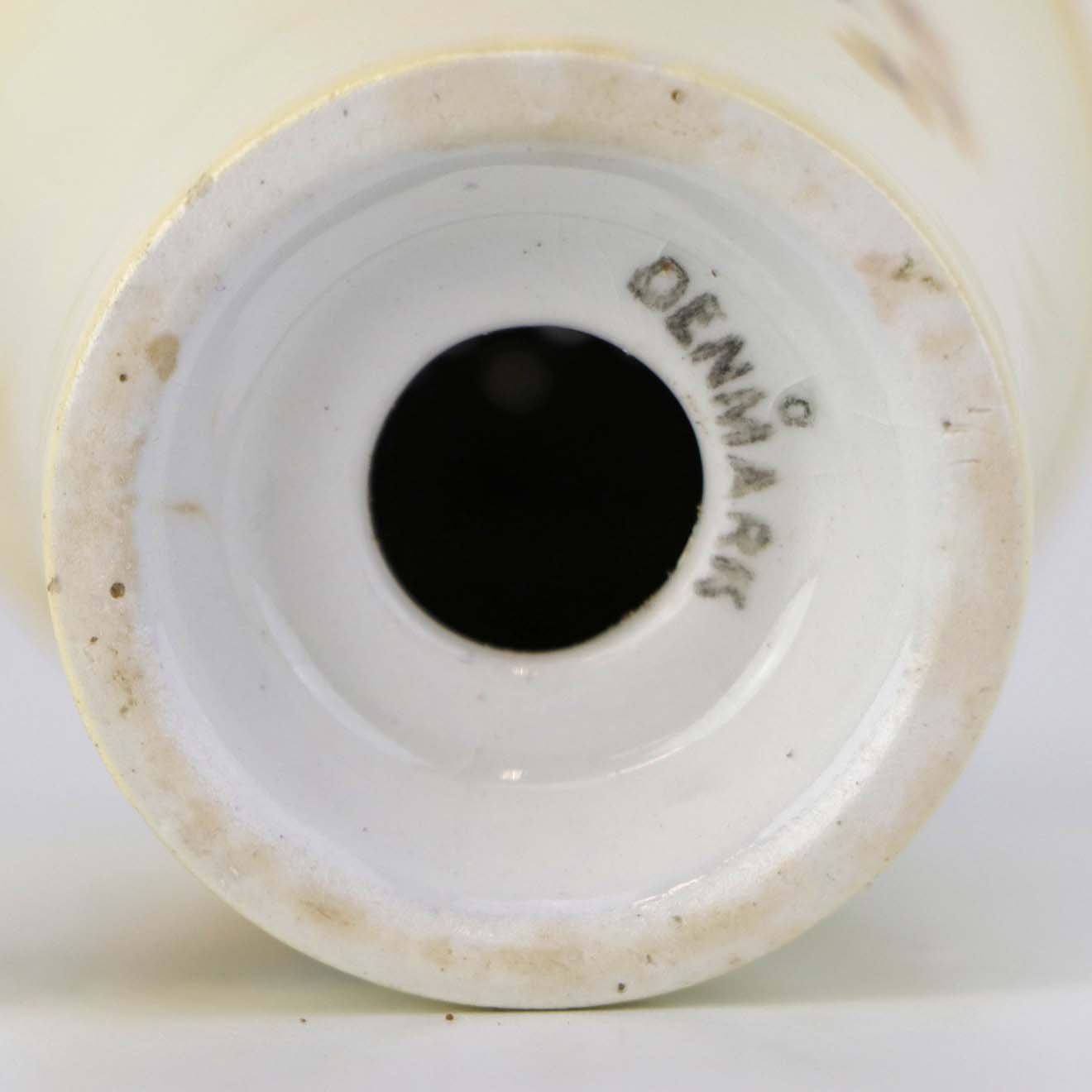 Fremstår med et mindre nøk i glasuren ved støhullerne samt mindre grønlig nuance under glasuren på et mindre område på toppen.