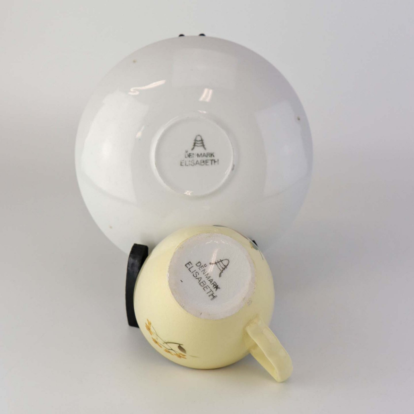 Kaffekop med underkop i fajance fra stellet Elisabeth.Formgiver Nils Thorsson (1934-1965)