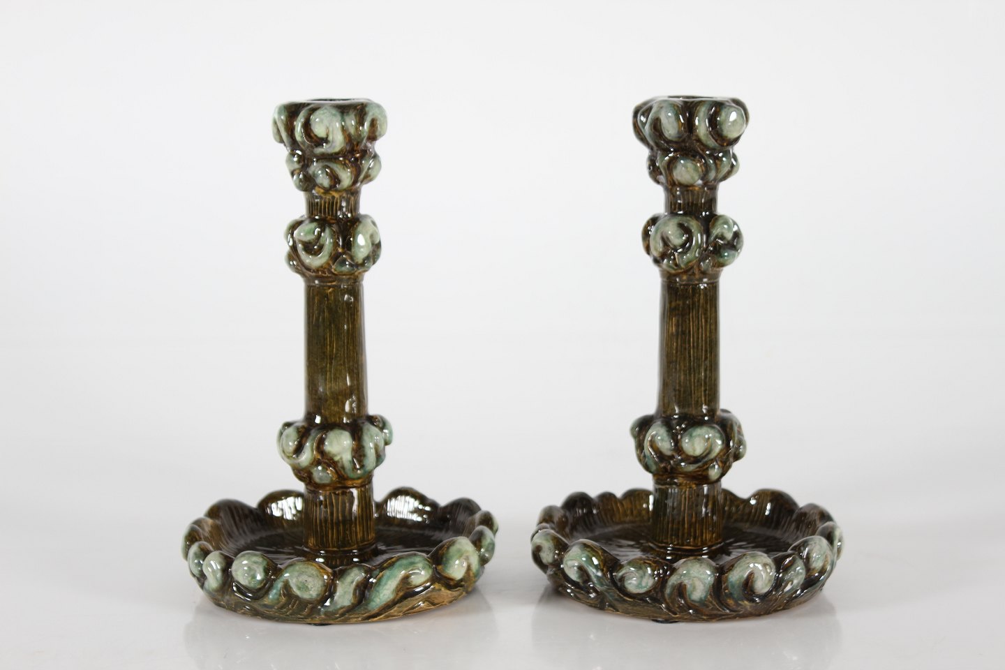 Thorvald Bindesbøll for P. Ipsen KjøbenhavnEt par keramik lysestager