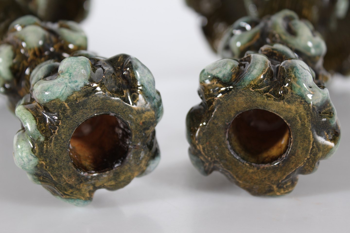 Glaseret i mørkegrønne og turkise farver