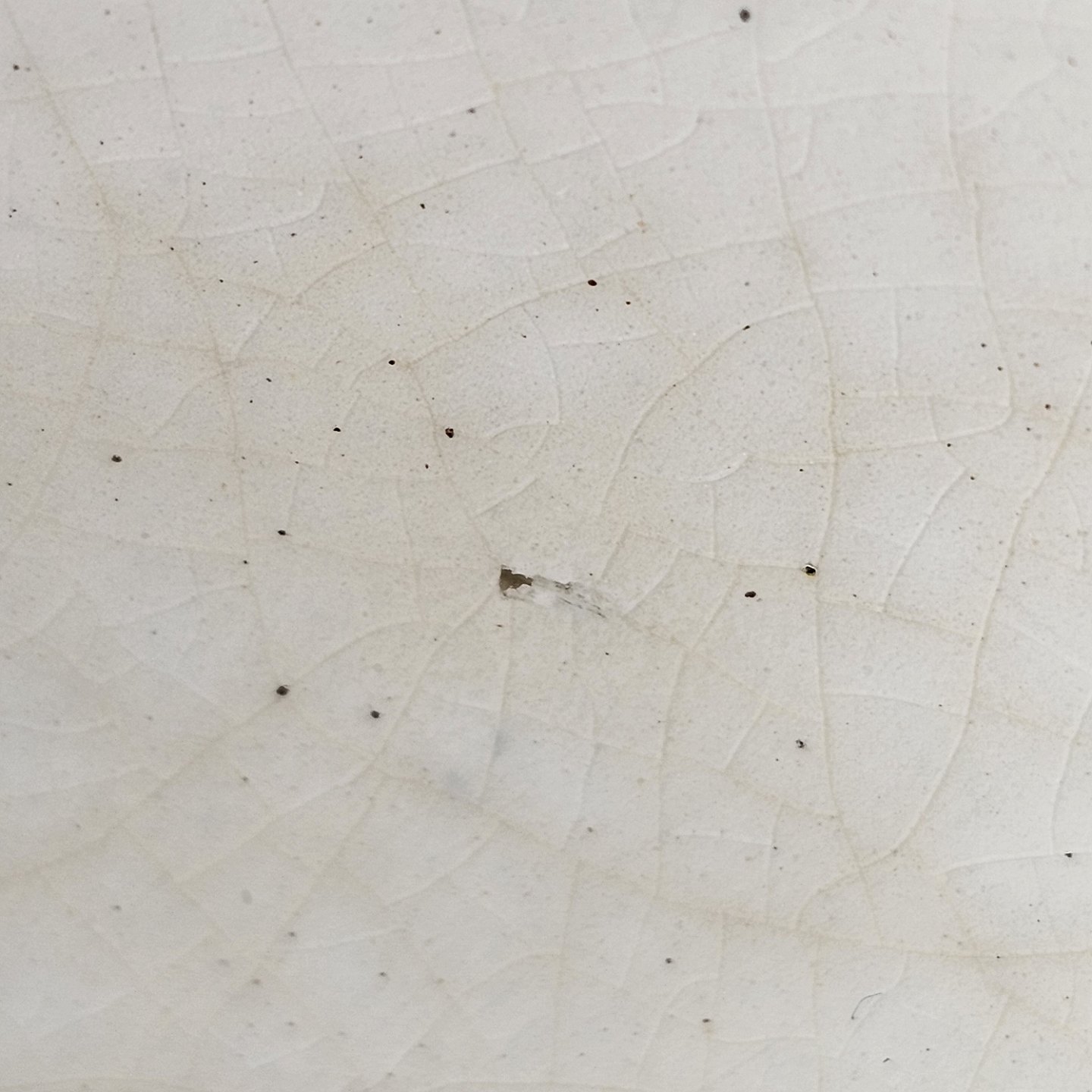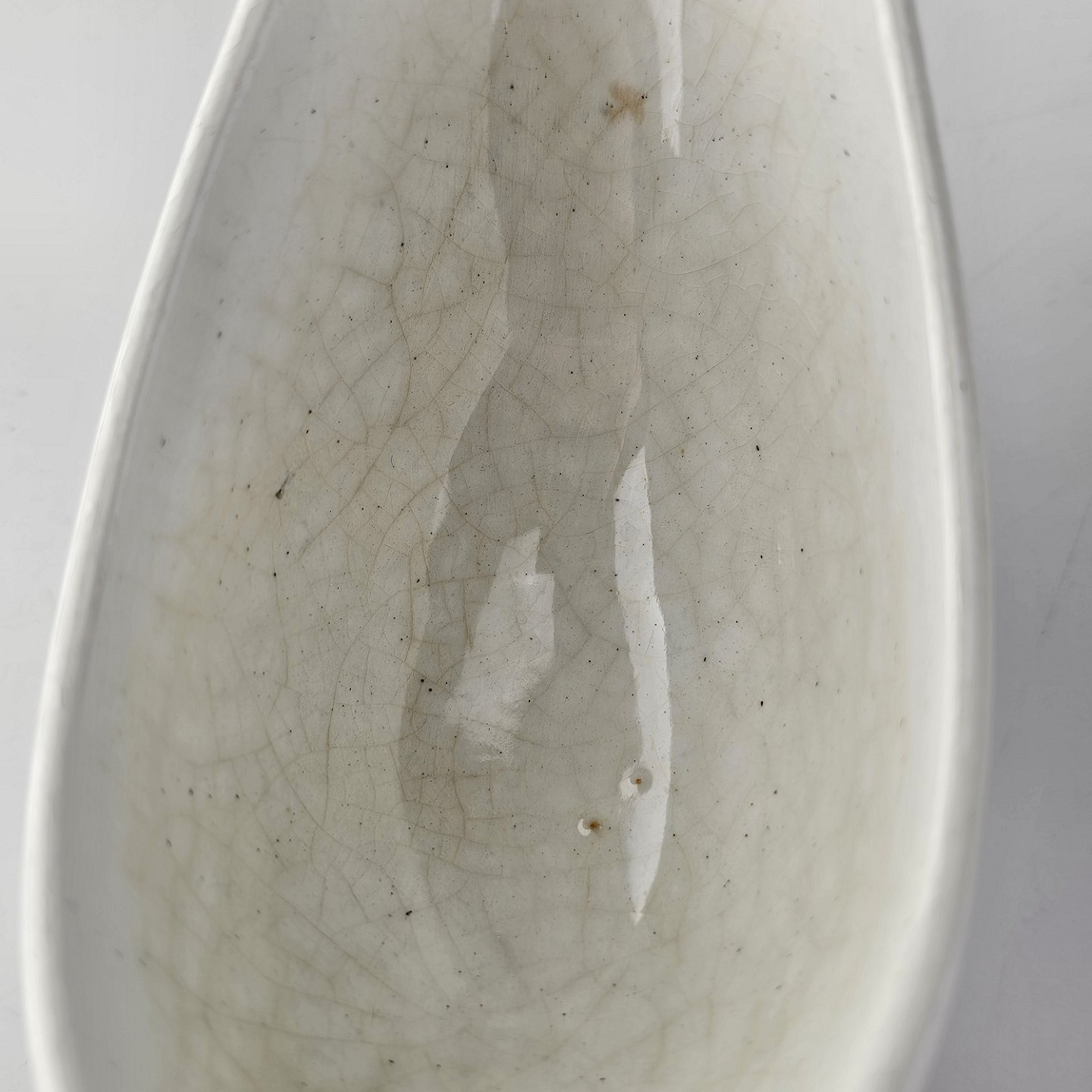 Fremstår med krakeleringer, nister, og et lille hul