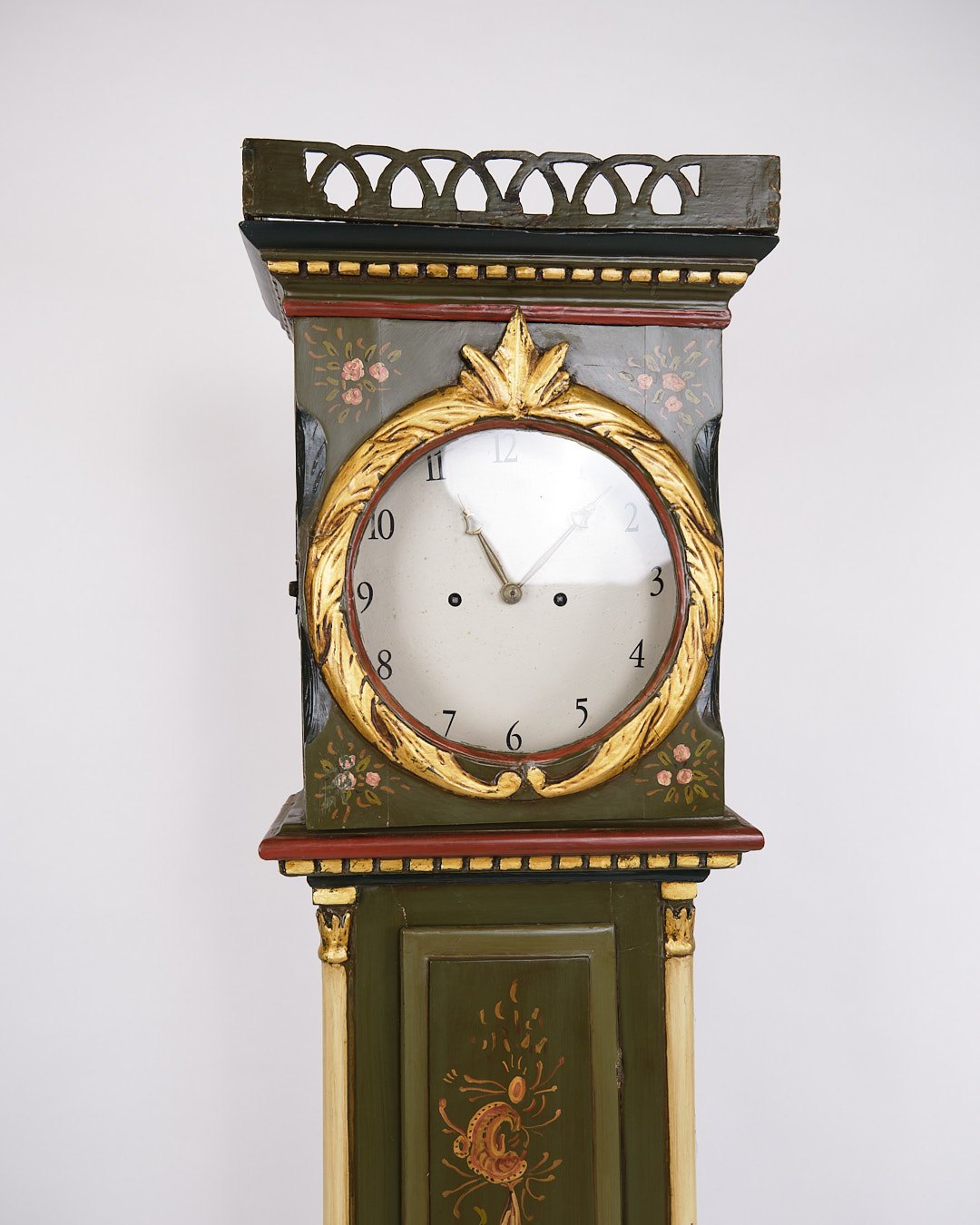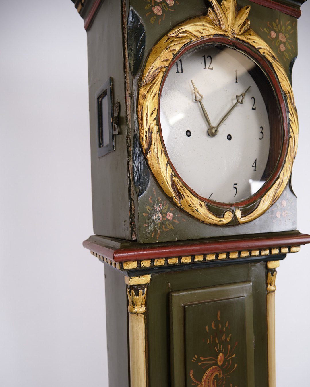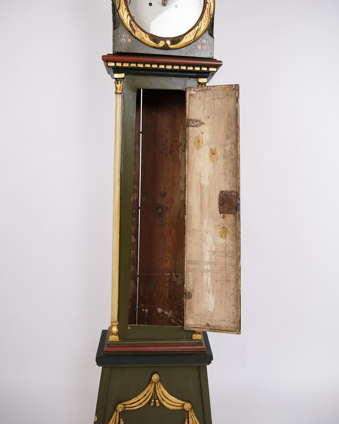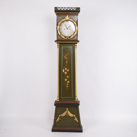 Antikt bornholmerur / standerur fra 1840’erne. Bemalet med håndmalet dekoration.— Periode: 1840’erne