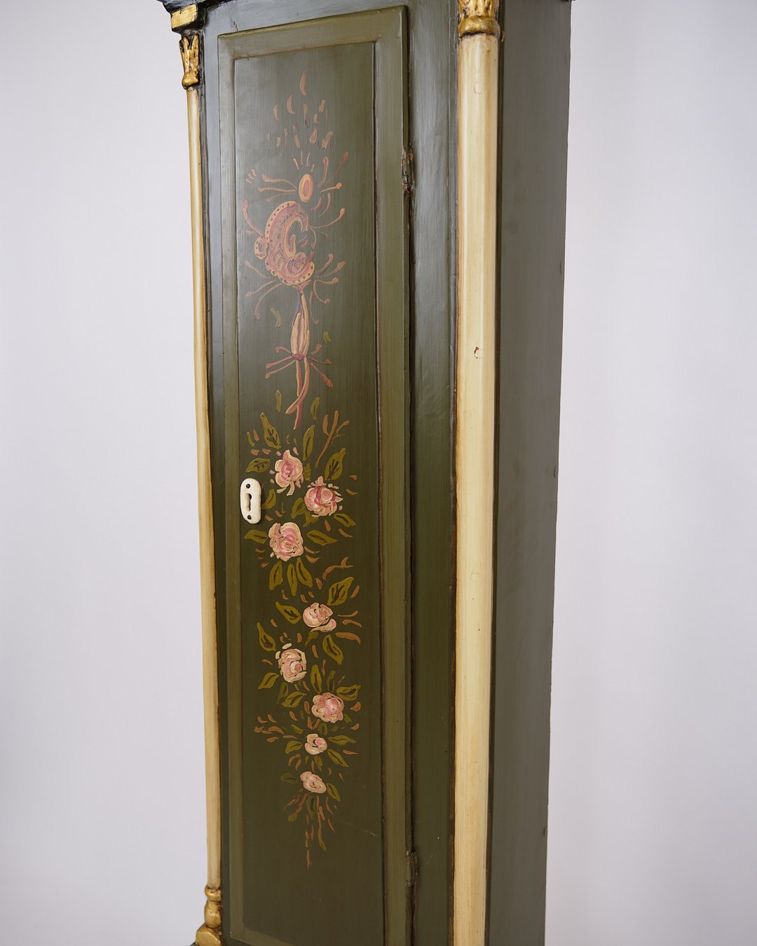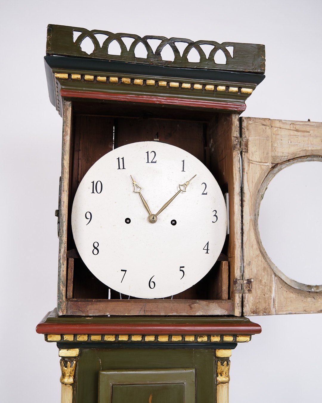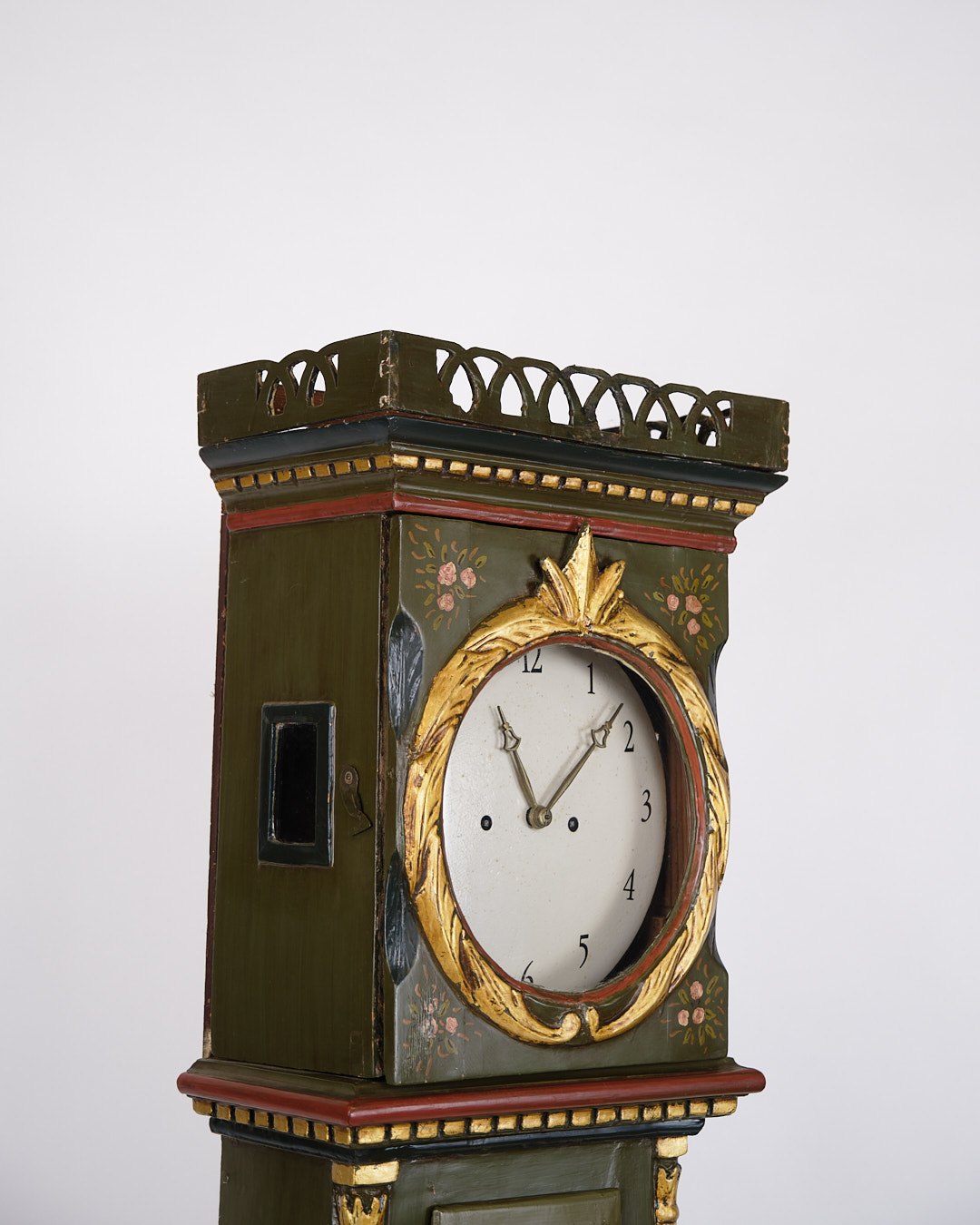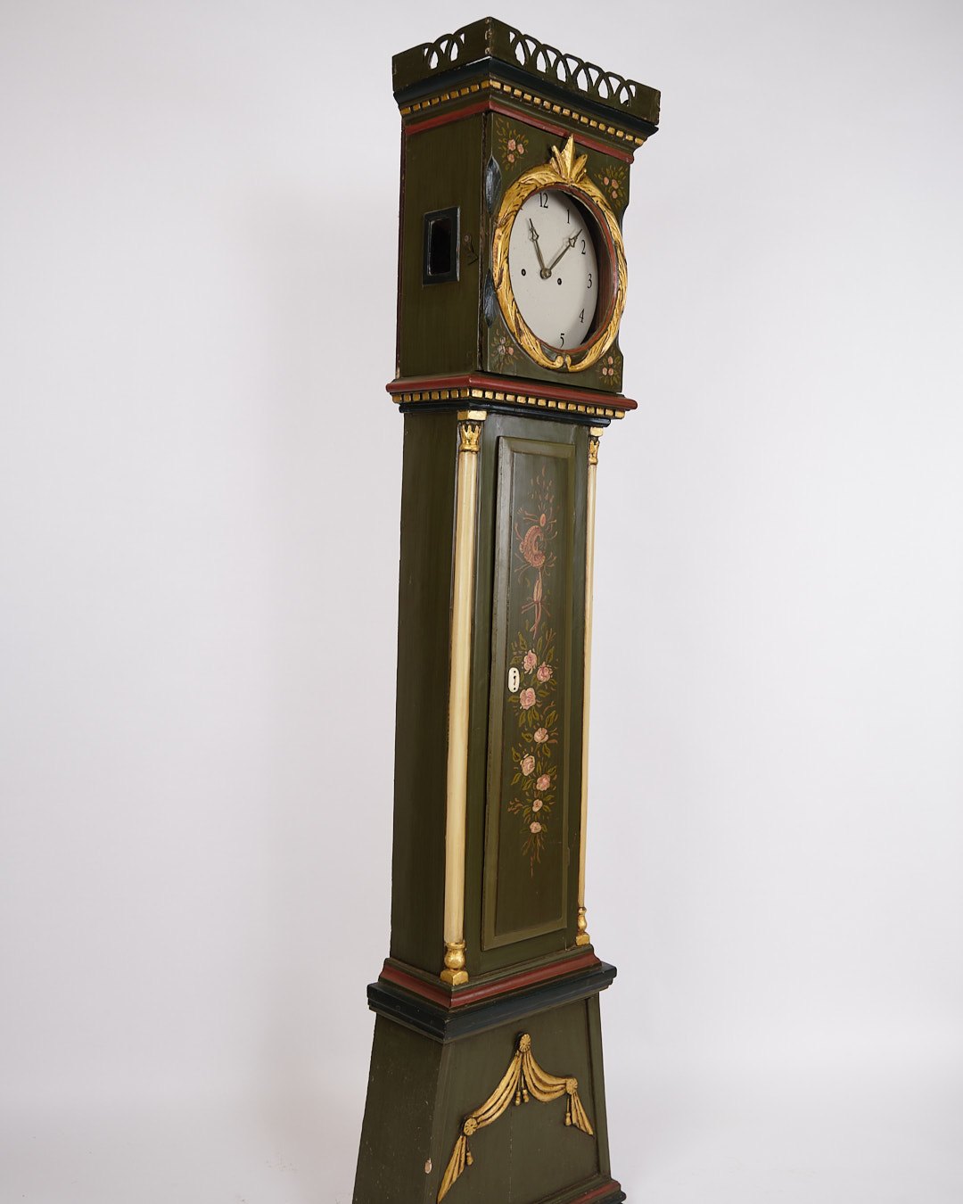 Antikt bornholmerur / standerur fra 1840’erne. Bemalet med håndmalet dekoration.— Periode: 1840’erne