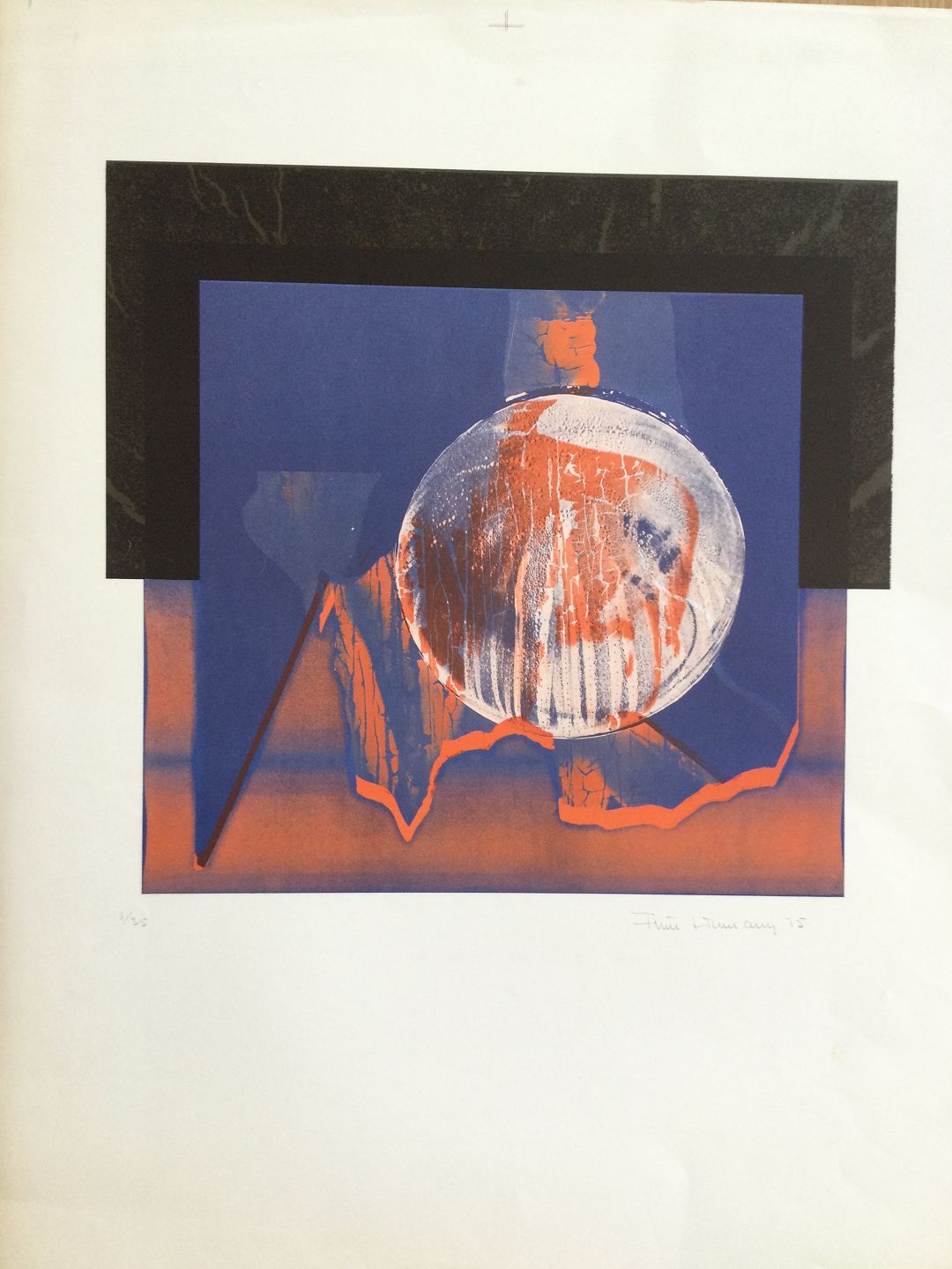 Farvelitografi af Finn Lohmann - Komposition 1975