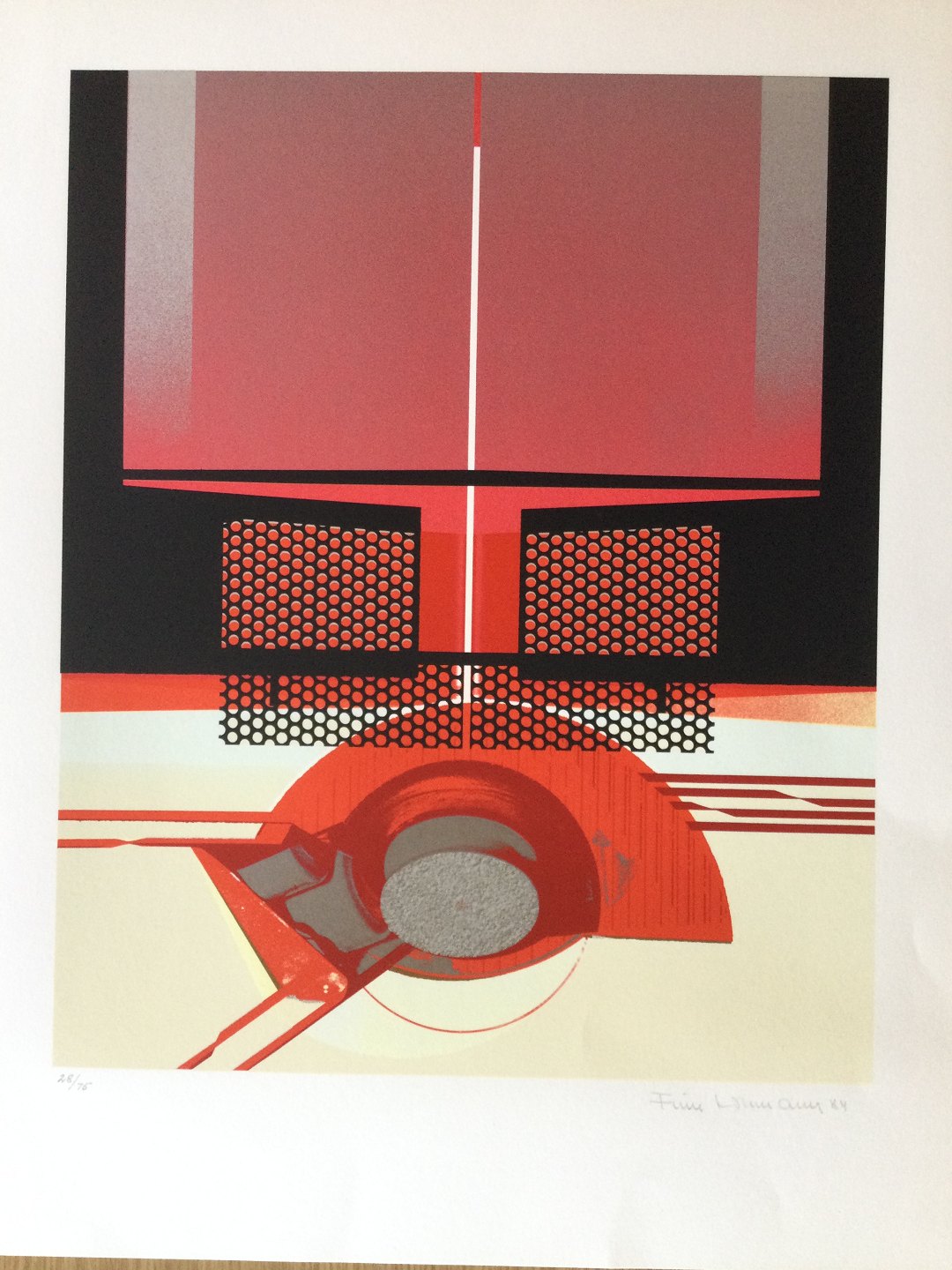 Farvelitografi af Finn Lohmann - Komposition 1984