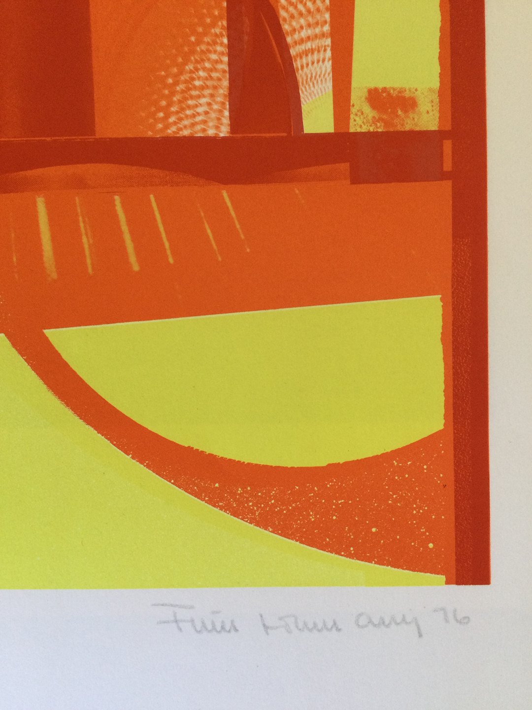 Farvelitografi af Finn Lohmann - Komposition 1976.