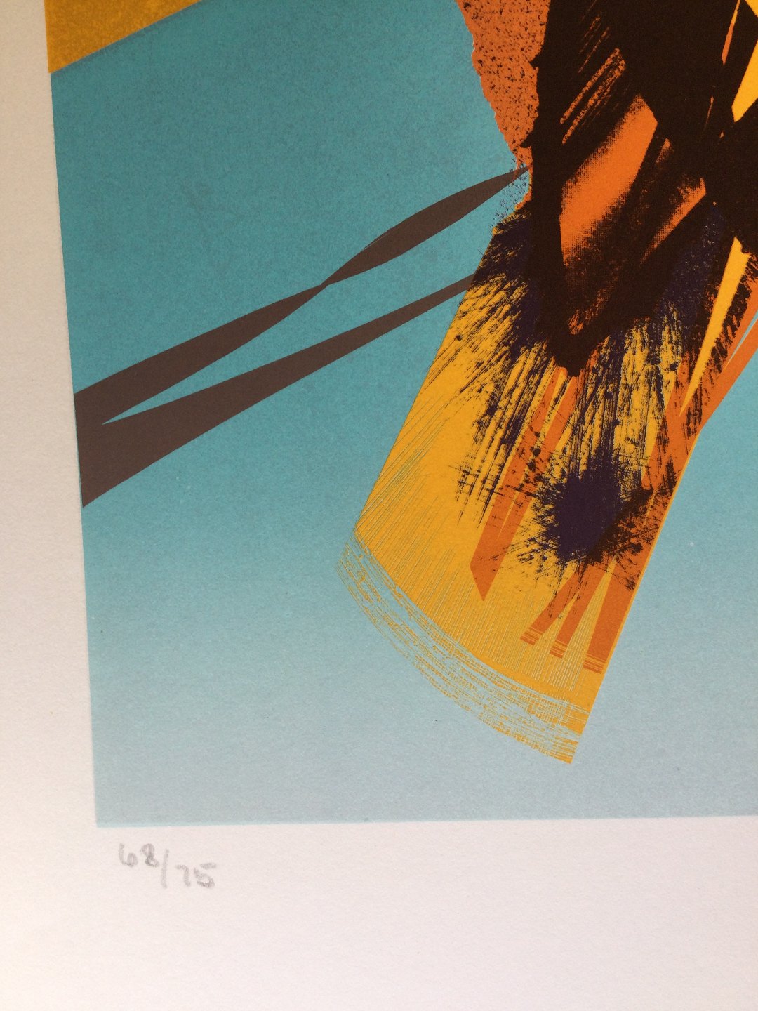 Farvelitografi af Finn Lohmann - Komposition 1976.