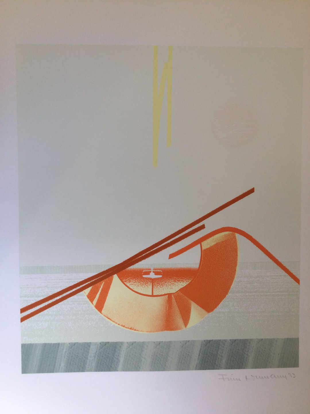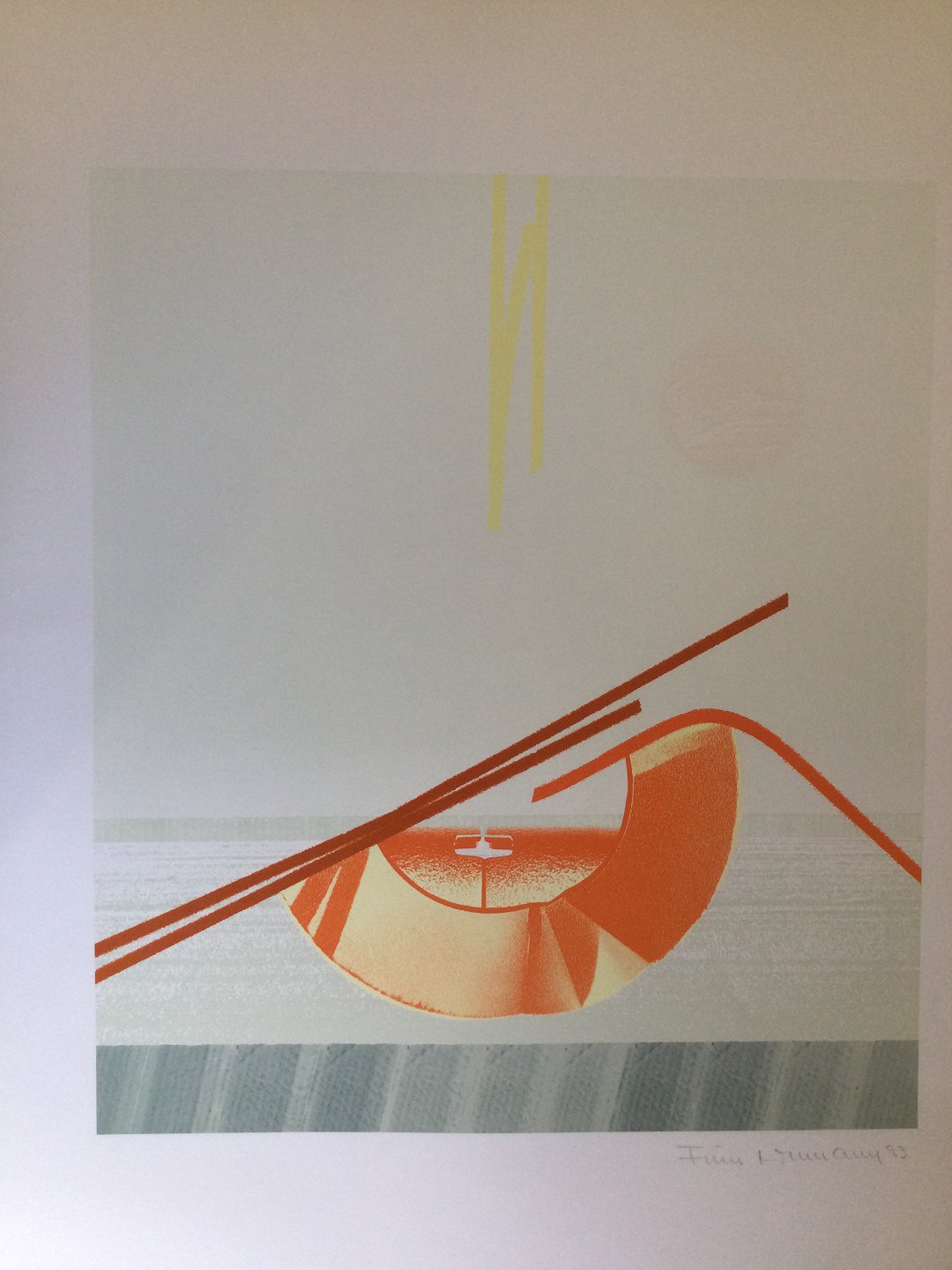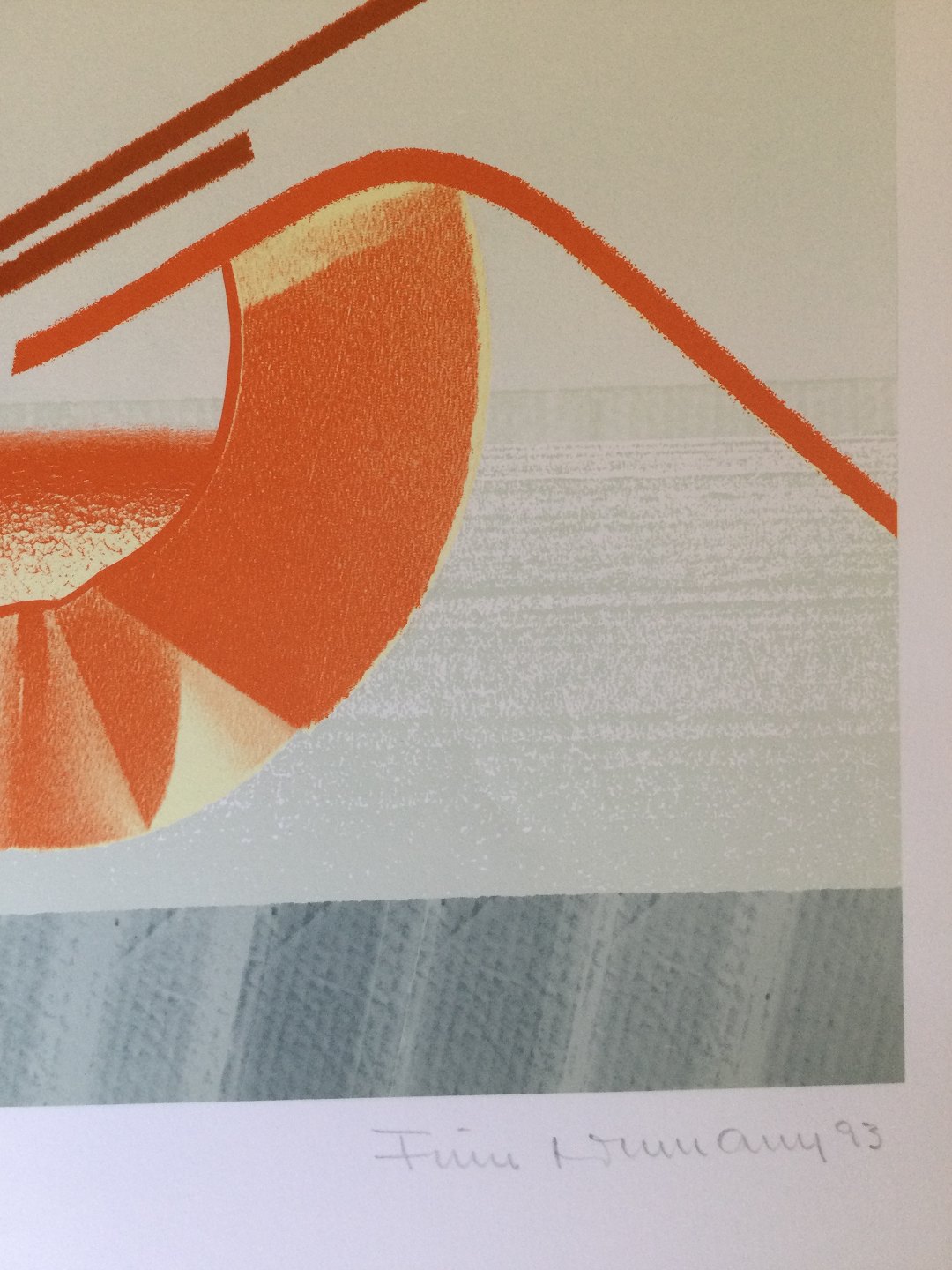 Farvelitografi af Finn Lohmann - Komposition 1993.