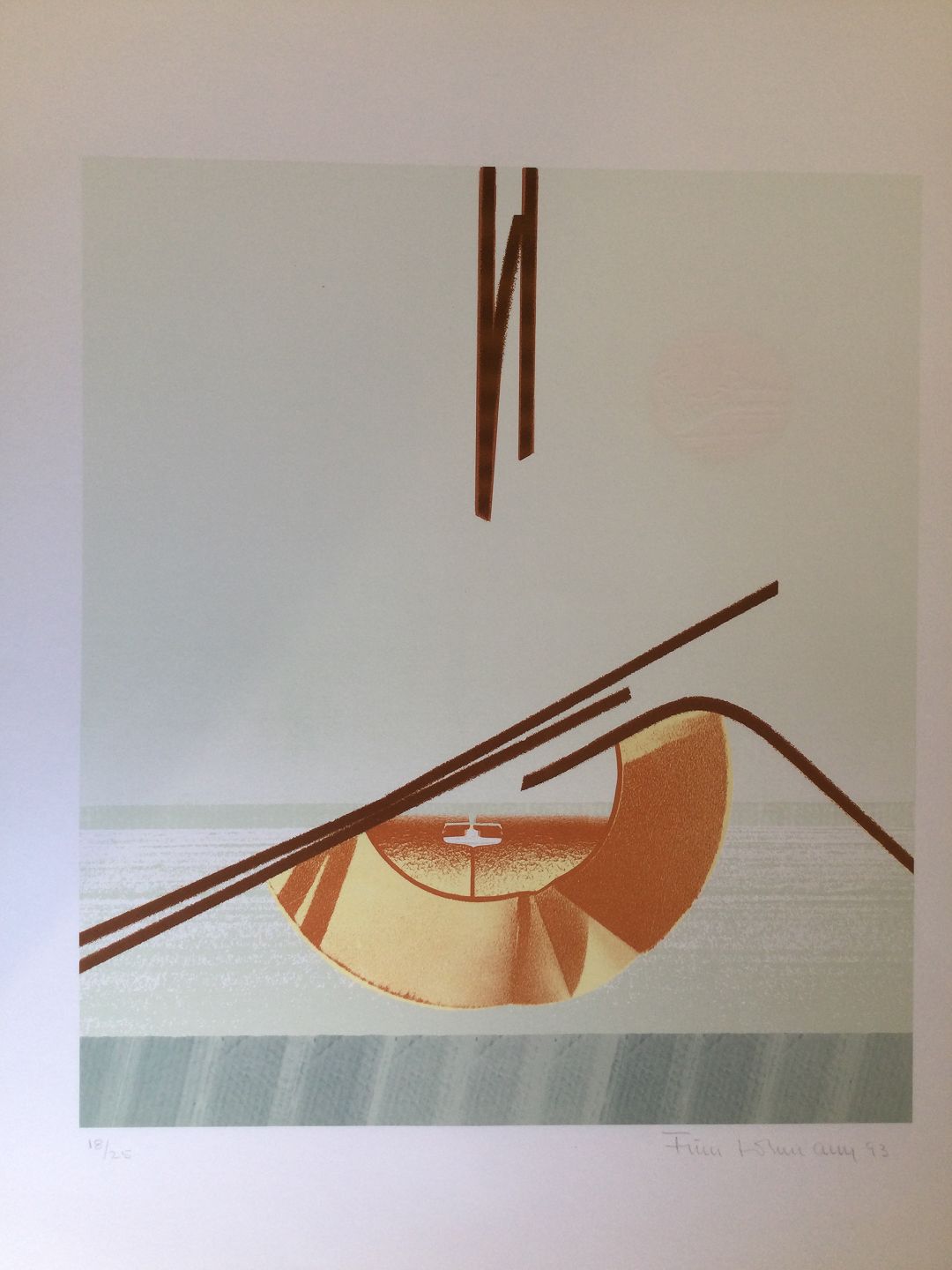 Farvelitografi af Finn Lohmann - Komposition 1993.