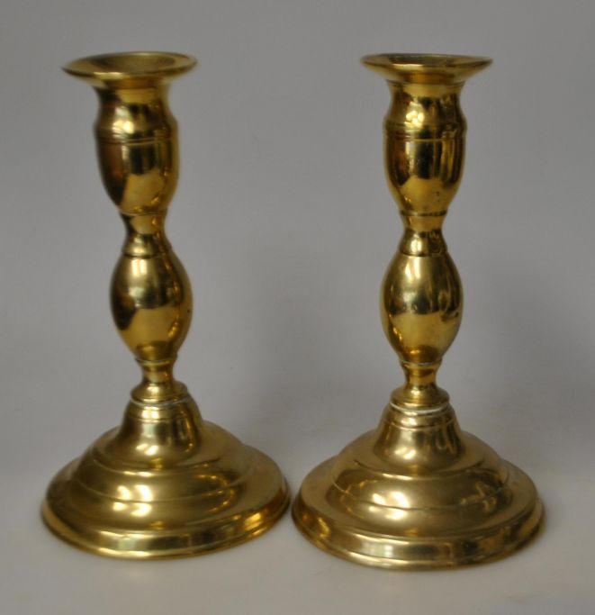 Paar dänische Empire-Kerzenleuchter aus Messing, um 1820. Ohne Stempel. H.: 16 cm.Perfekter Zustand!