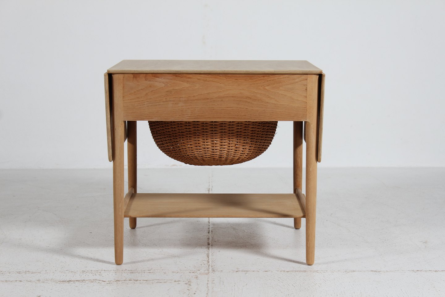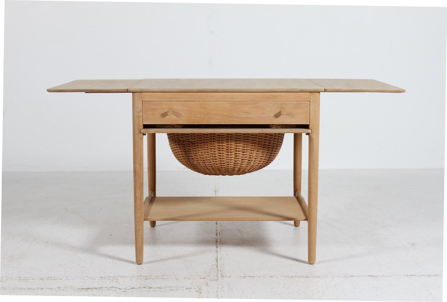 egetræ m/skuffe og kurv til garnnøgler