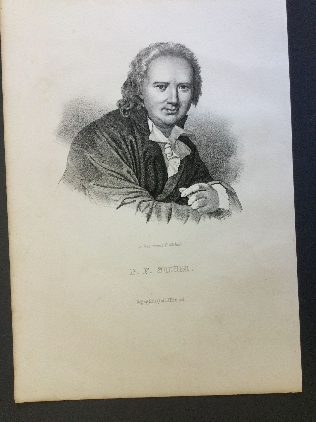 Litografi af Em. Bærentzen - Portræt af Historiker og Bogsamler Peter Frederik Suhm.
