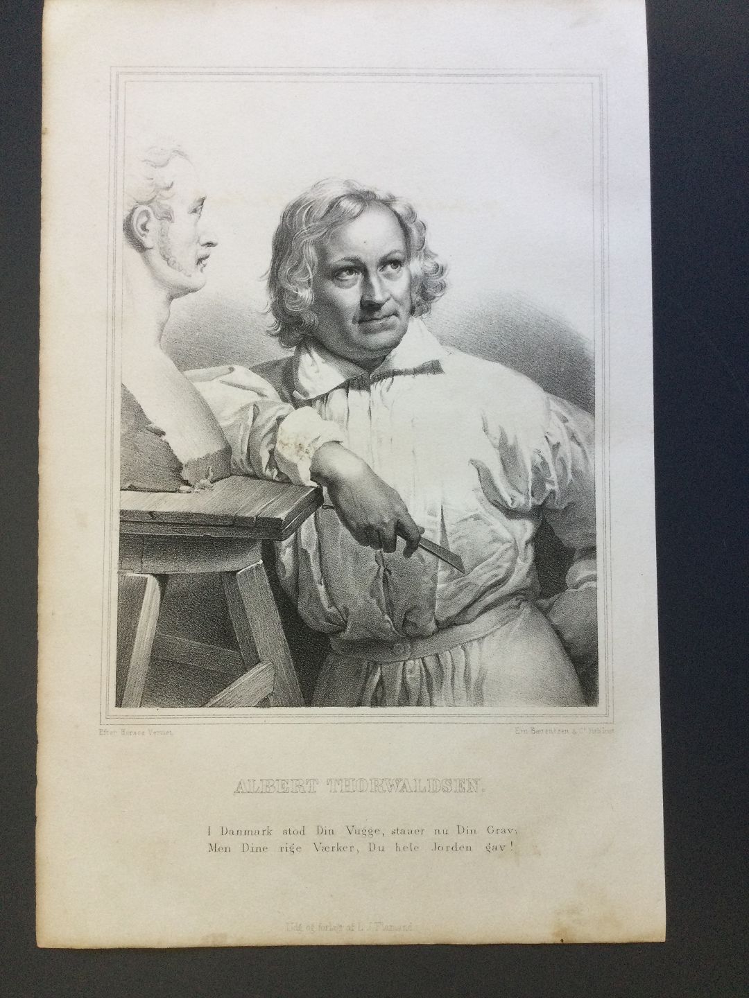 Portræt af Billedhugger Bertel Thorvaldsen - litografi af Em. Bærentzen ca. 1850.