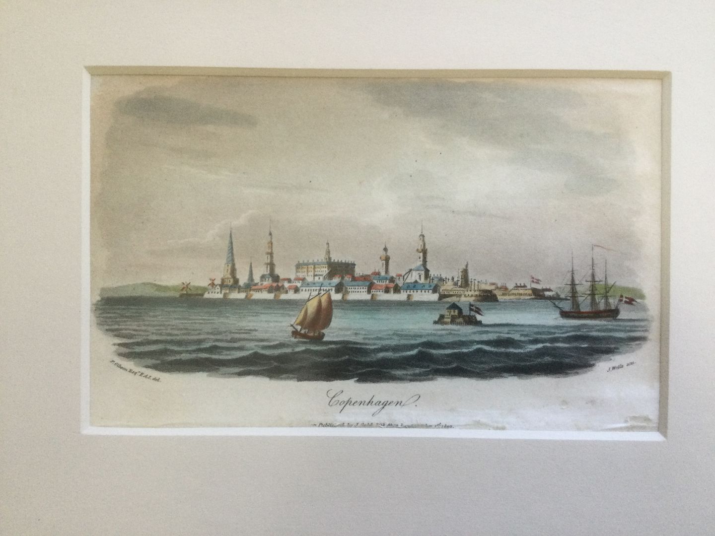 Koloreret akvatinte af J. Wells - Vue indover København 1802.