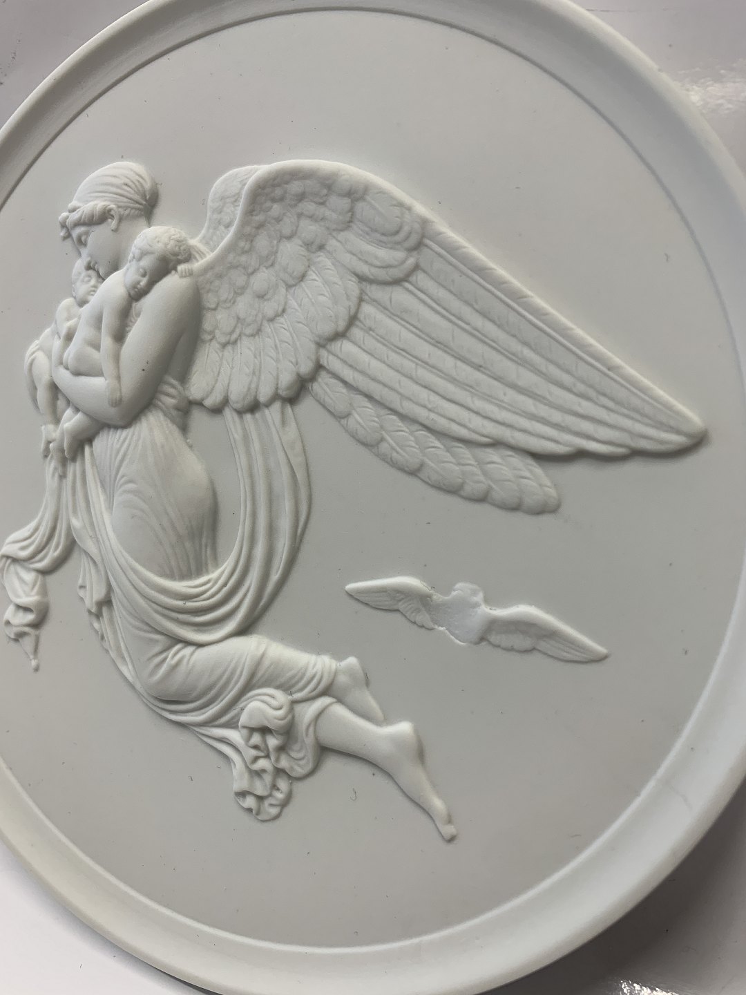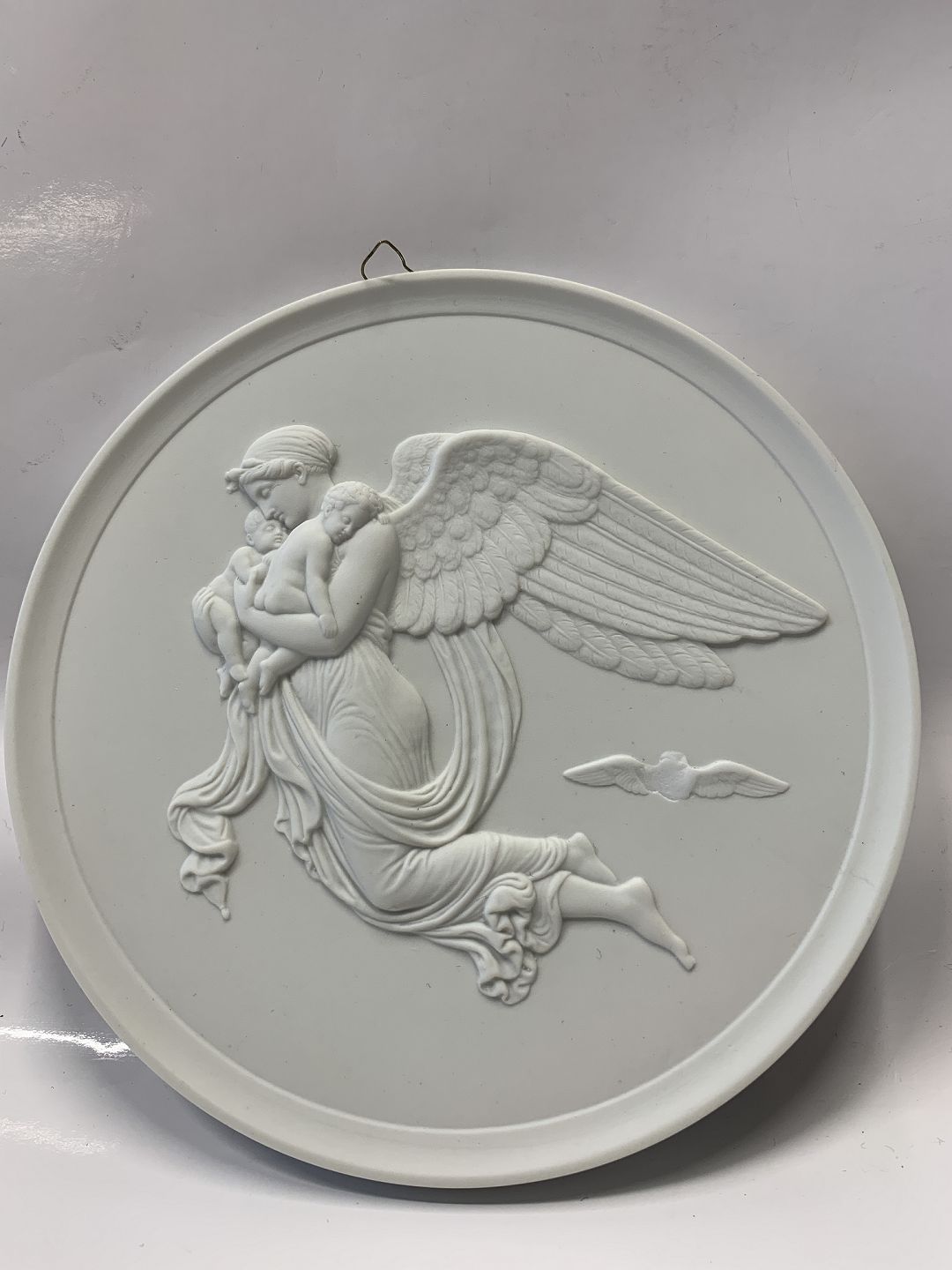 Royal Copenhagen Bisquit platte af Thorvaldsen, Natten.Måler 15 cm.