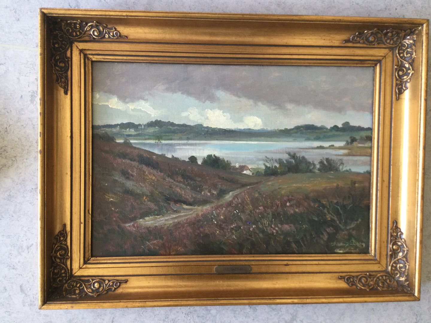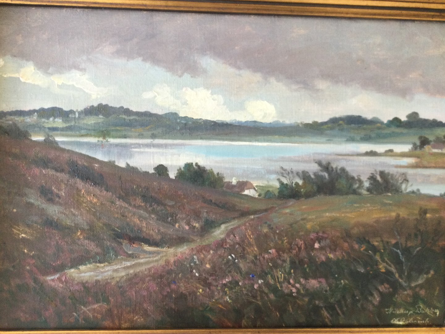 Maleri af Axel Aabrink - Parti fra Kielstrup sø og bakker.Beschreibung: