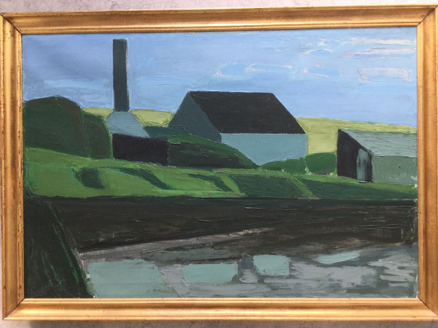 Maleri af Alfred Bay - Landskab med huse.Beschreibung: