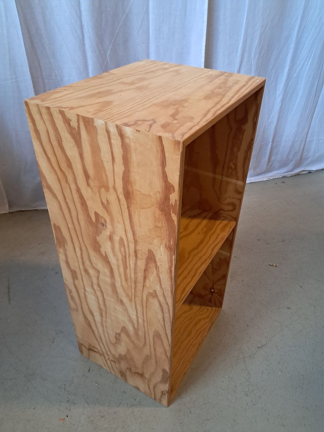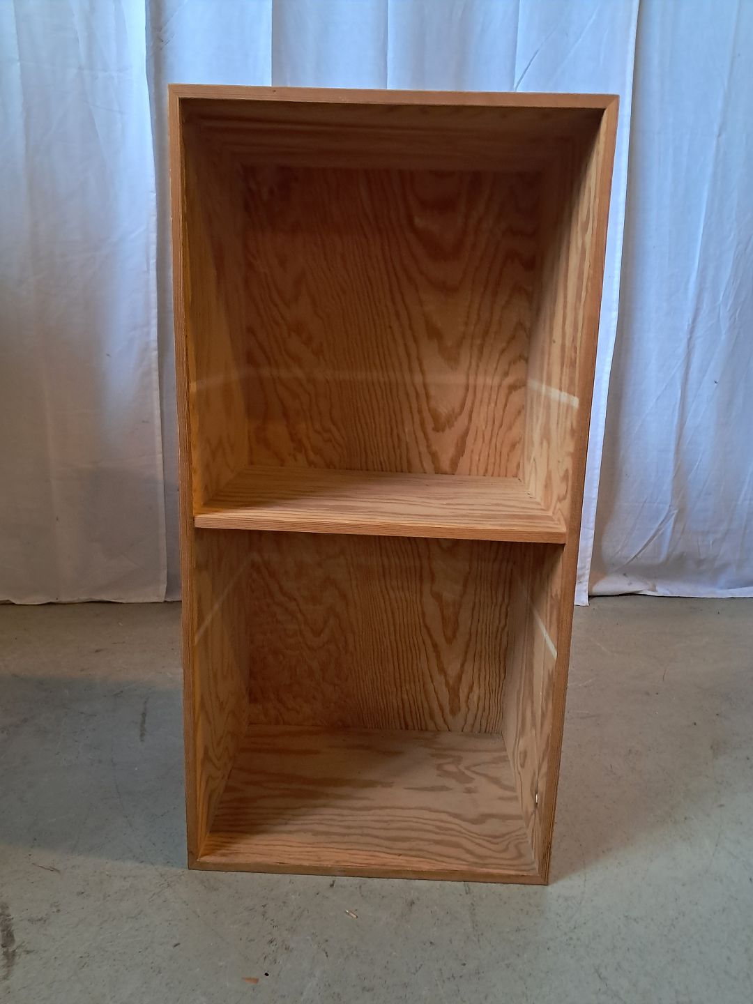 Reolkasse i krydsfiner, fra 2000erne.Den har brugsspor og der medfølger ikke ophæng.
