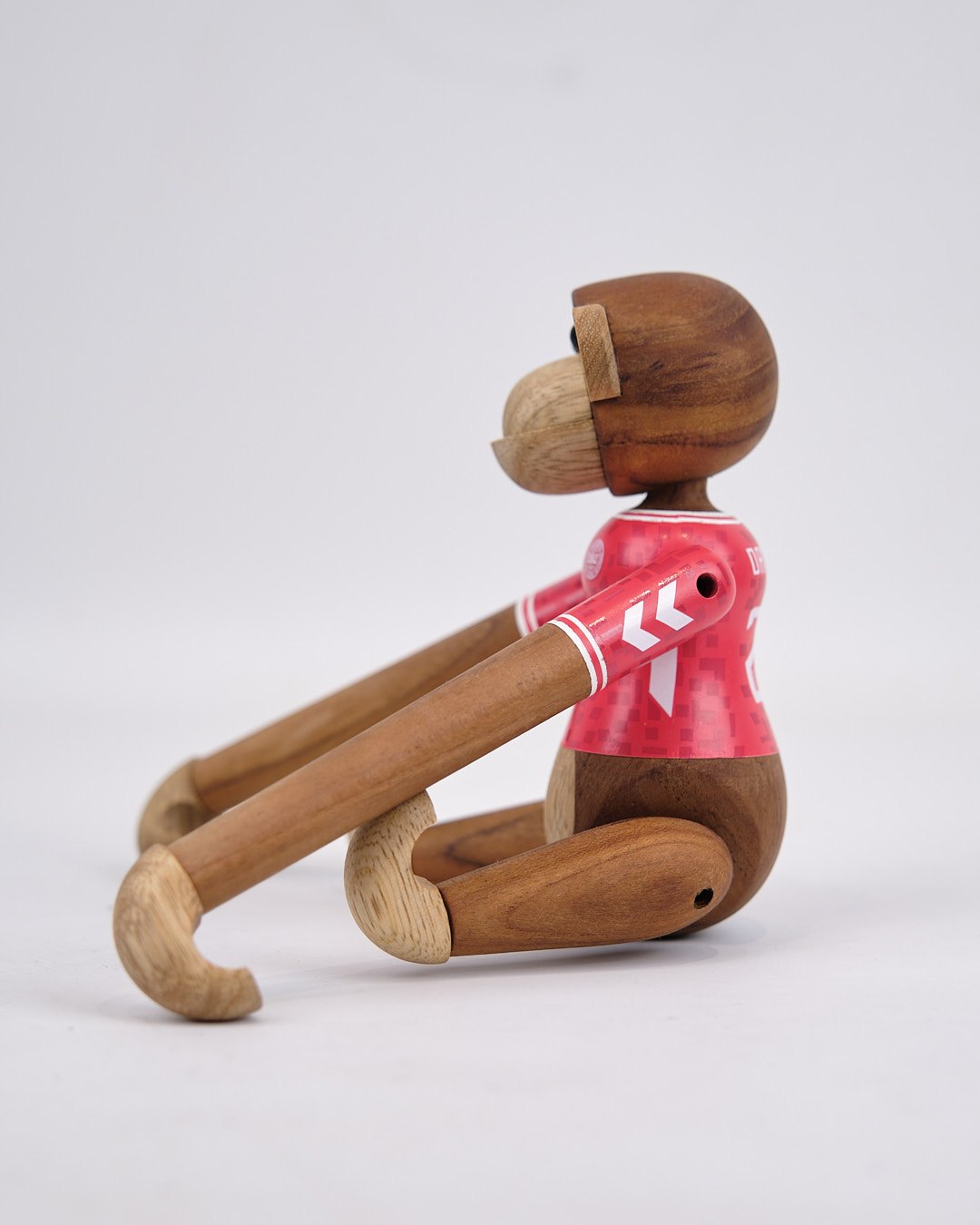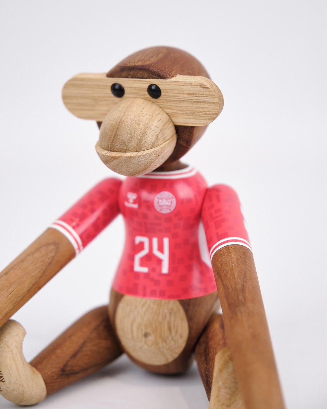 Kay Bojesen Affe, kleines Modell aus Teak und Limba. DBU Herren-Nationalmannschaft limitierte Edition. Klassische dänische Designikone.— Herkunft: Dänemark