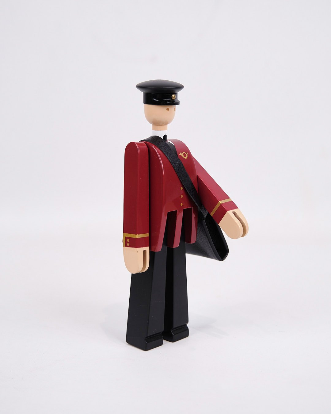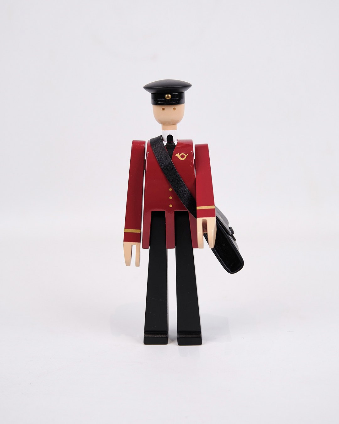 Kay Bojesen Figur „Postbote Einar“. Bemaltes Holz, Höhe 20 cm. Klassische dänische Designikone.— Herkunft: Dänemark