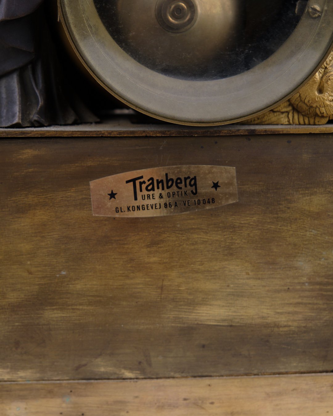 Fransk bronze kaminur fra 1820’erne. Empirestil med kvindefigur, strålekrone og bog. Elegant og velbevaret ur fra Paris.— Oprindelse: Frankrig, Paris