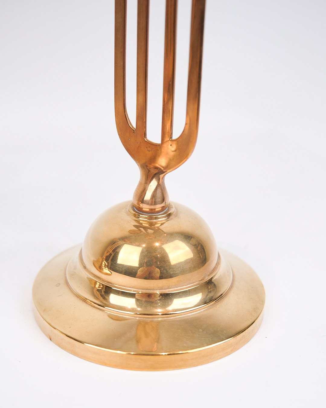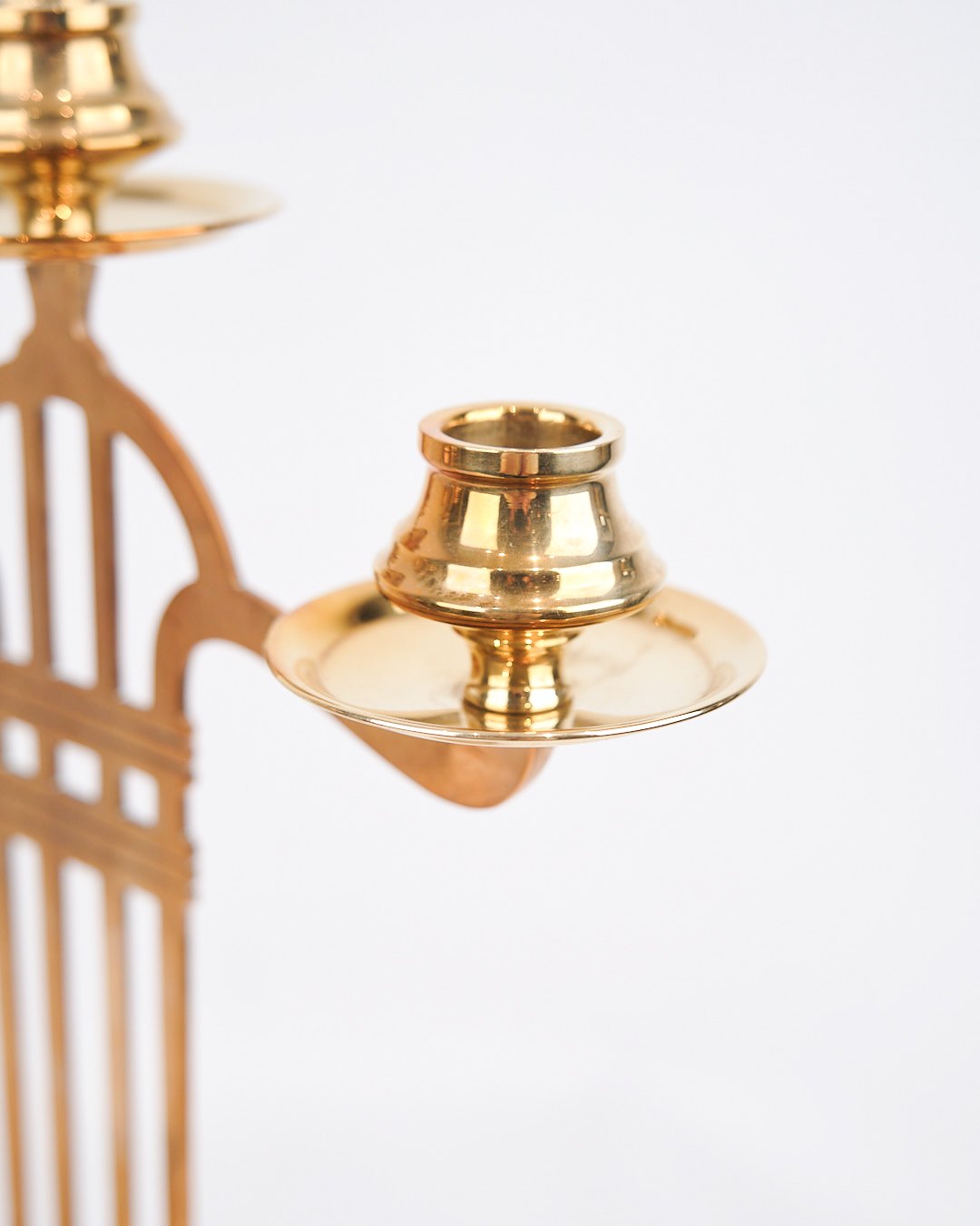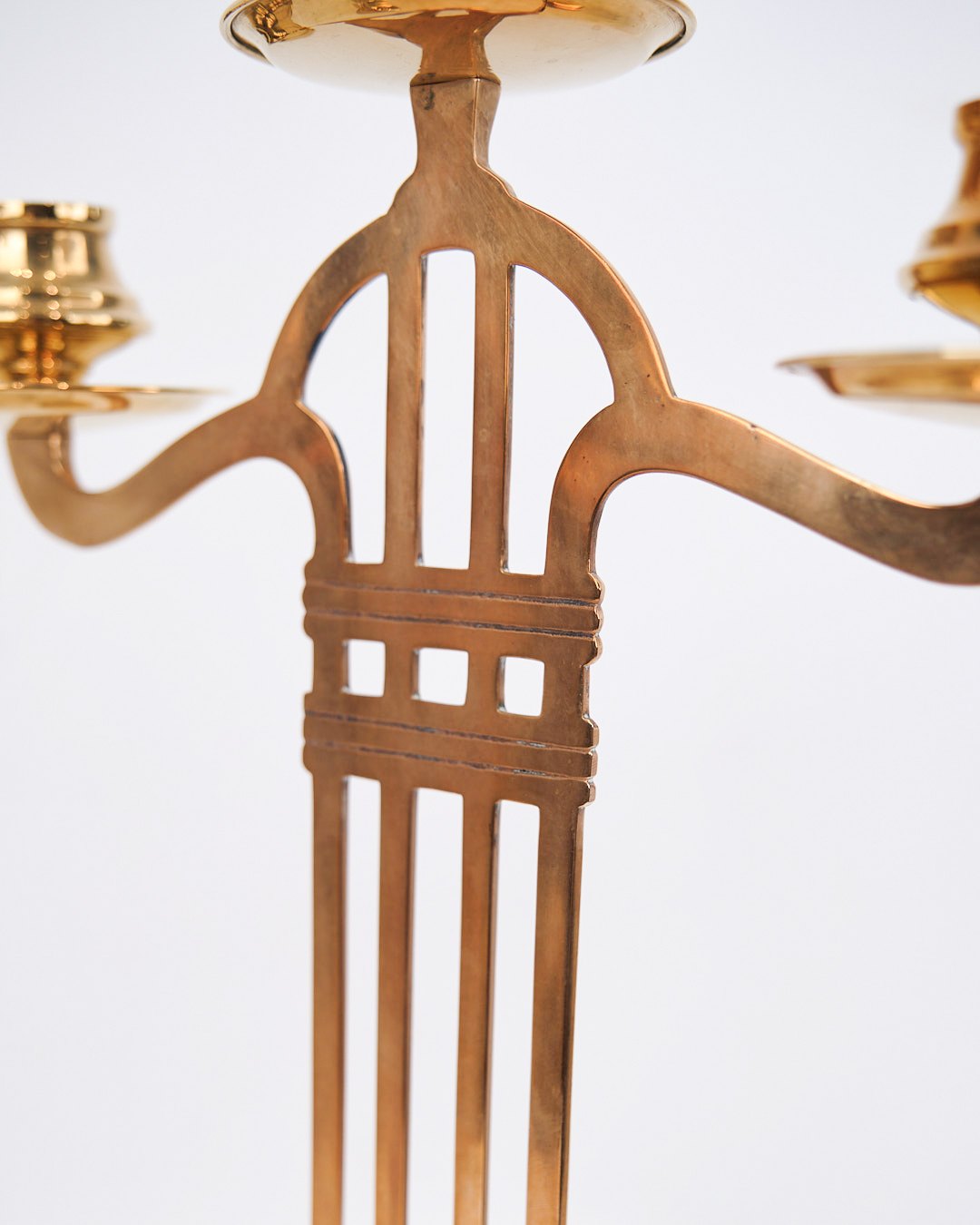Satz von zwei hohen dreiflammigen Kerzenleuchtern aus Messing aus den 1920er Jahren im Jugendstil.— Periode: 1920er Jahre