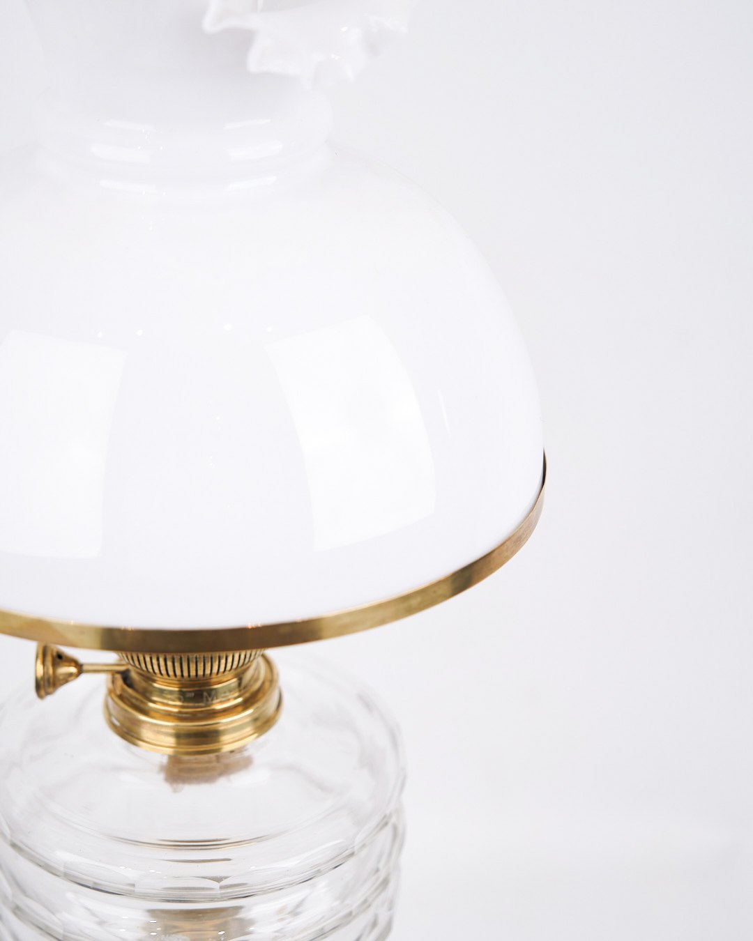 Petroleumslampe – Messing & Hvidt Opalglas – Fynsk Glasværk – År 1880’erneBeschreibung: