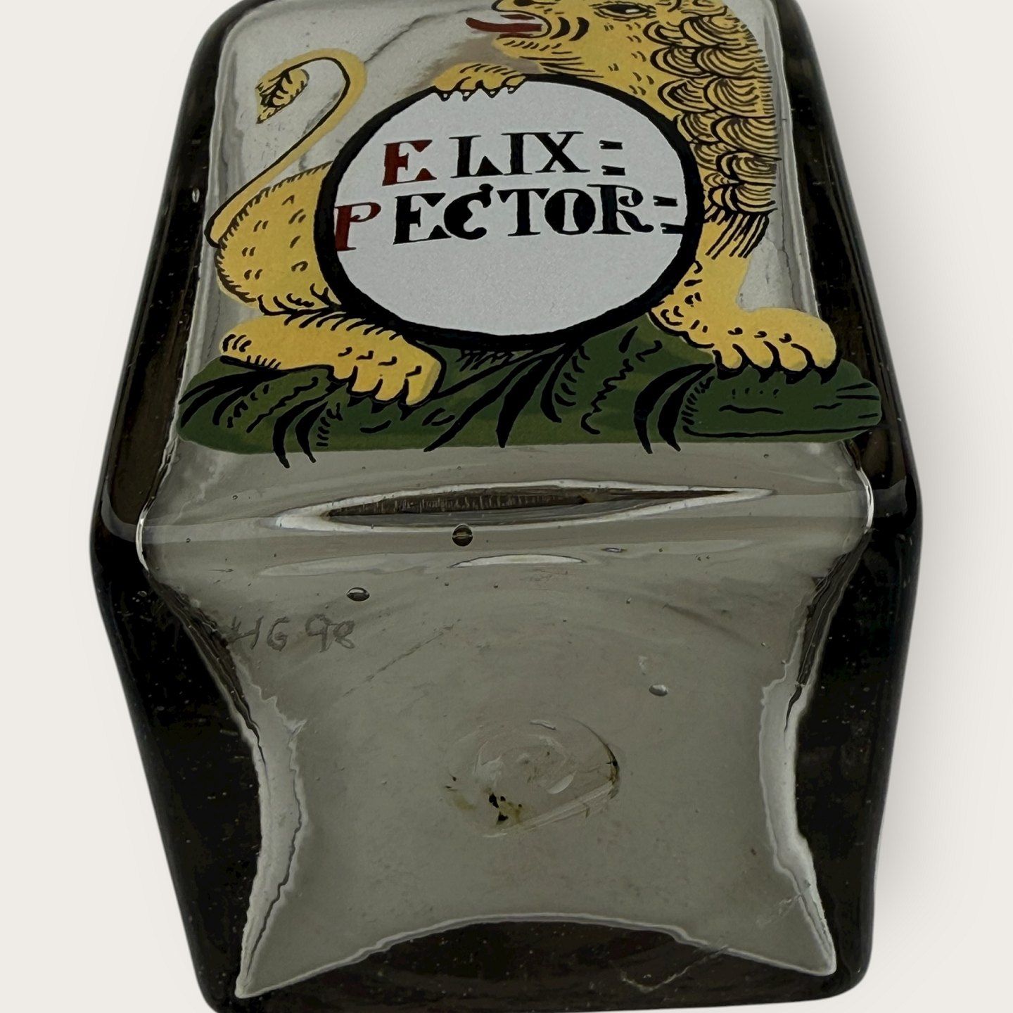 Holmegaard Apothekerflasche von 1998, Elixpector, Maße: 10x6x6cm, die Flaschen sind mundgeblasene Kopien von originalen alten Apothekerflaschen, signiert Hg98.Lager: 1