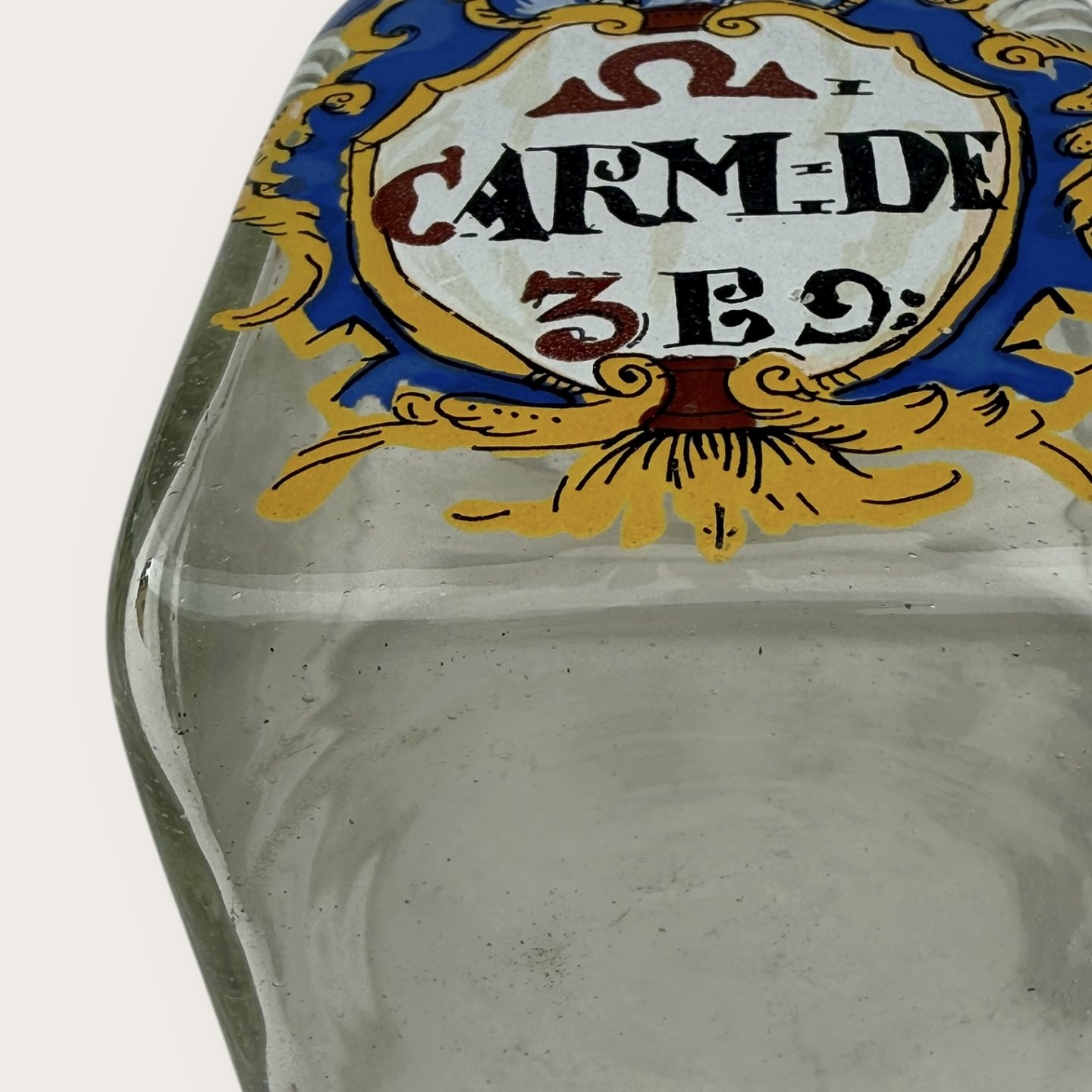 Holmegaard Apothekerflasche von 1994, Carm-de 3Ec, Maße: 11,5x7x7cm, die Flaschen sind mundgeblasene Kopien von originalen alten Apothekerflaschen, signiert Hg94.Lager: 1