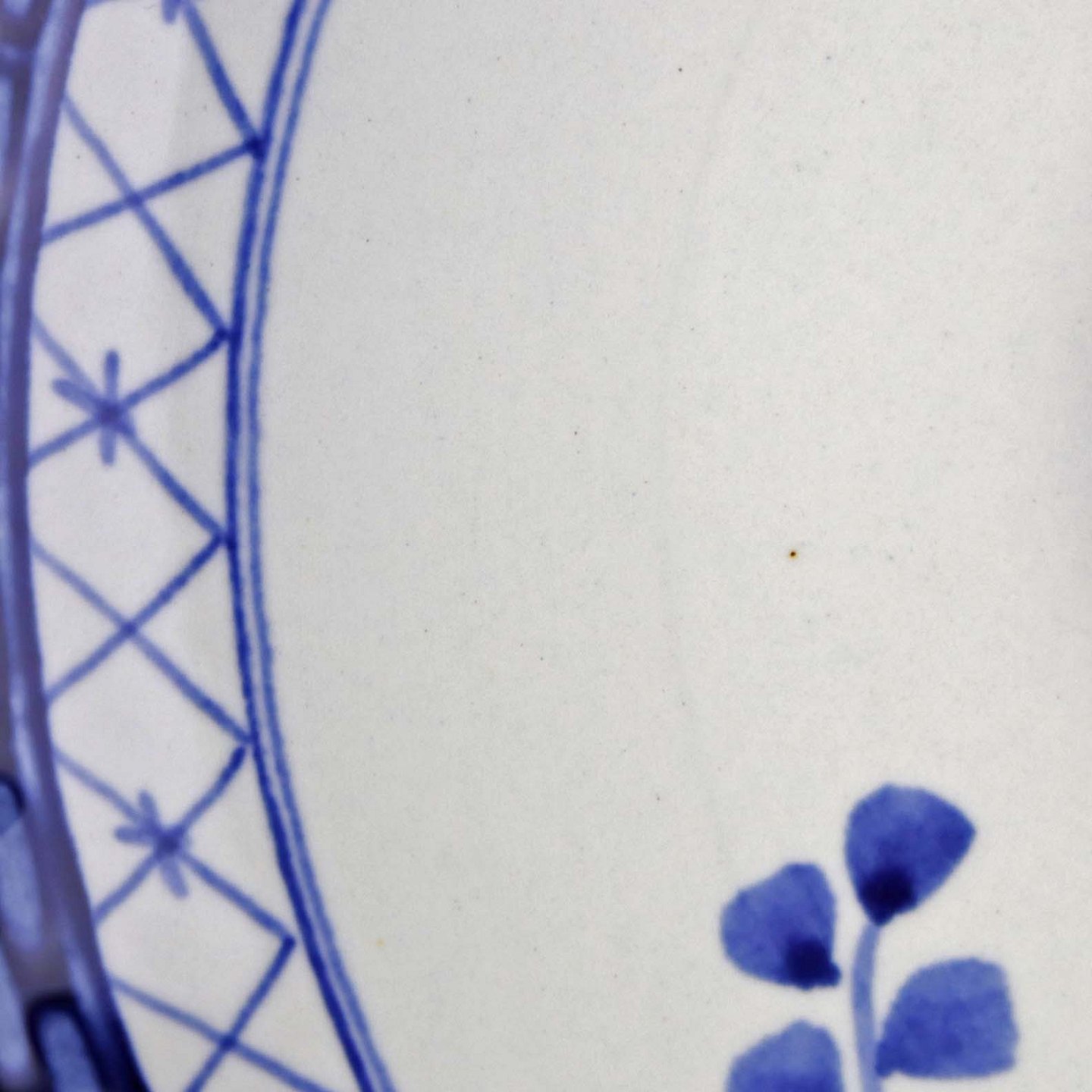 Glat Lyst fajance med blå dekoration af blomster og blå bort.