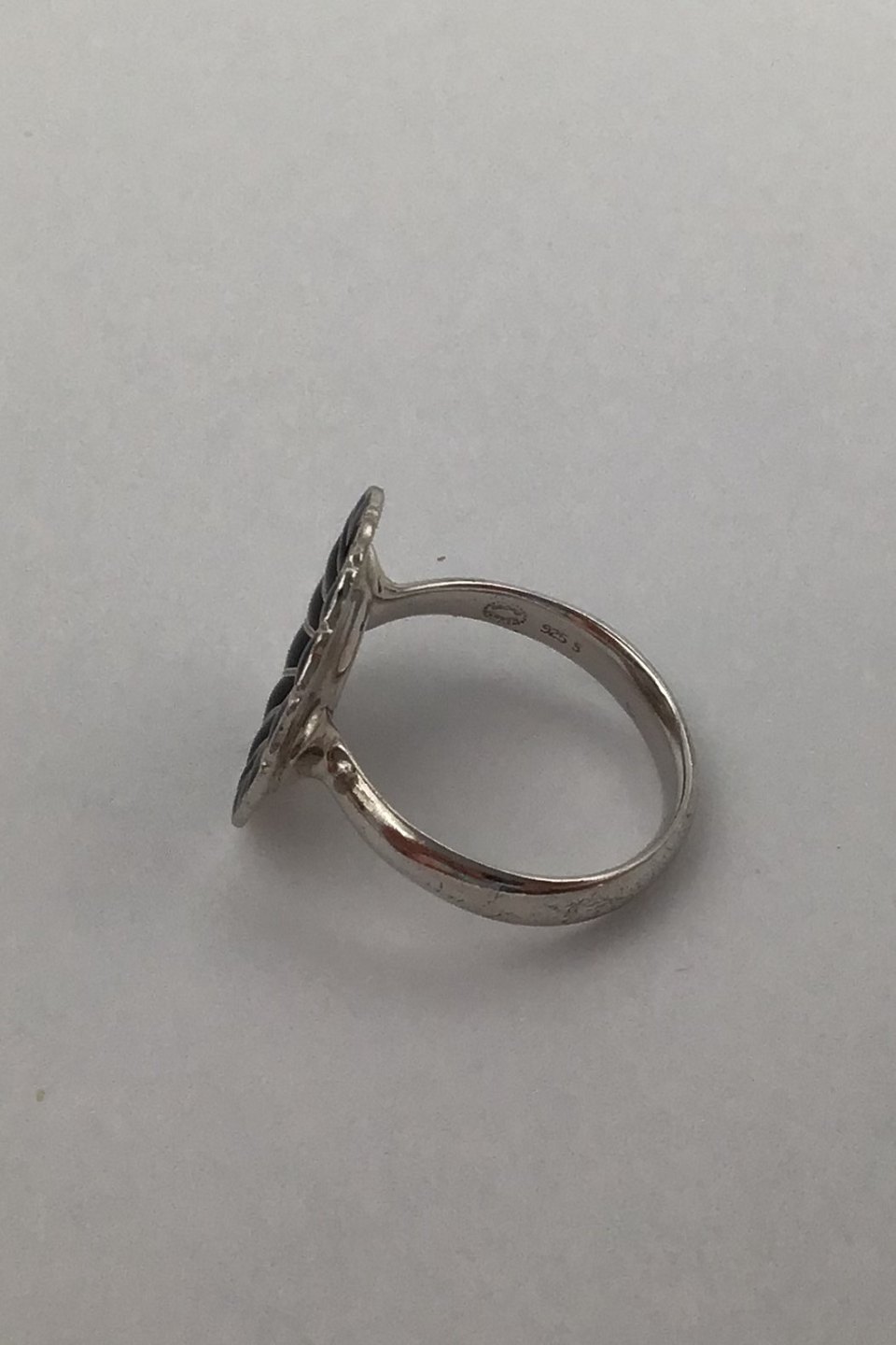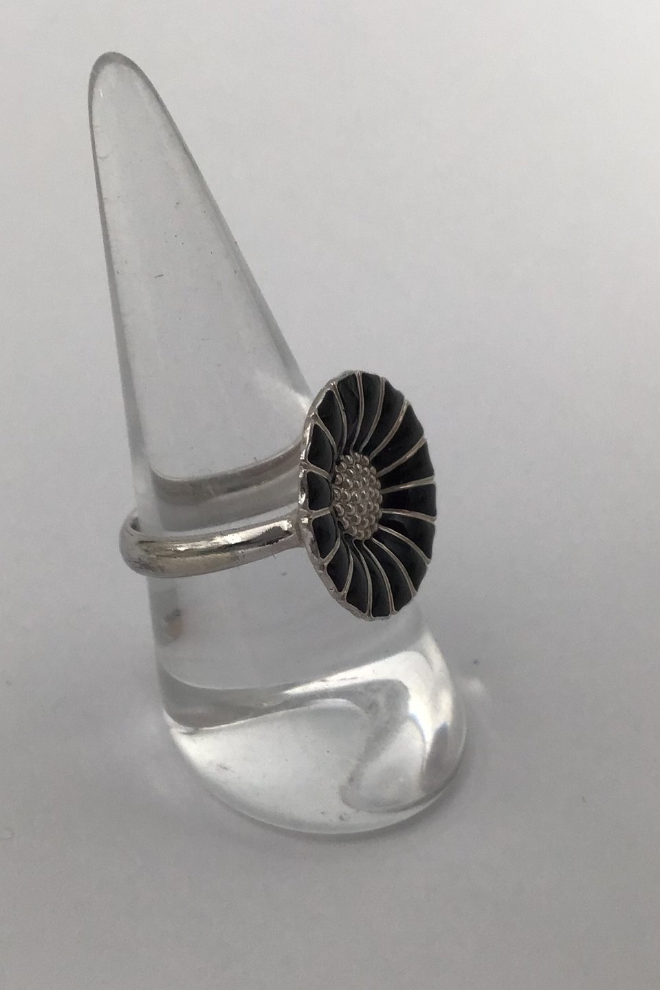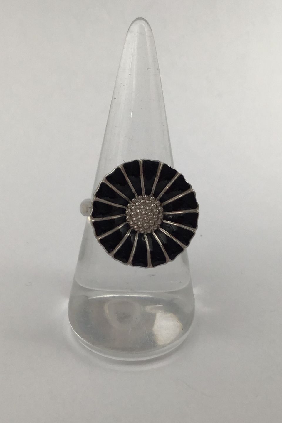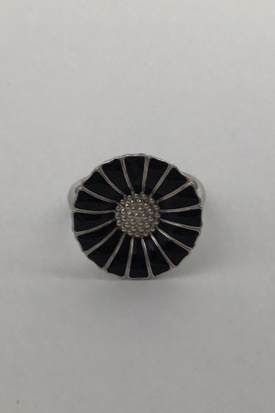 Georg Jensen Sterling Sølv Marguerit Ring (Sort)Måler Ring Str 55 (US 7 1/4) Vægt 4.36 gr (0.15 oz) (OBS Emalje afslag)