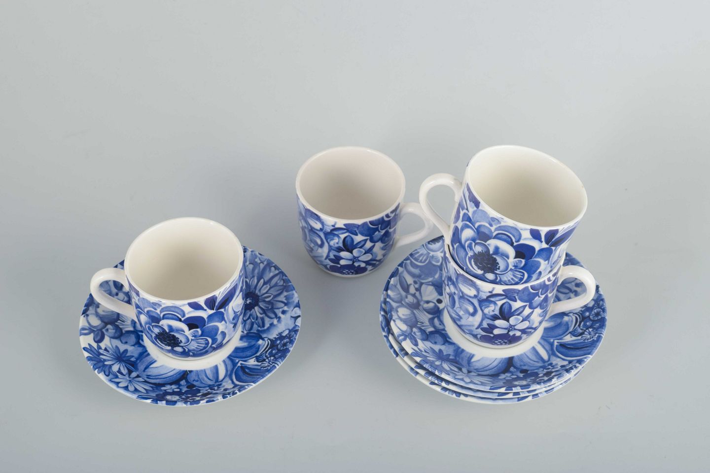 Gefle, "Blå Blomster"4 kaffekopper med underkopper, mid-century.