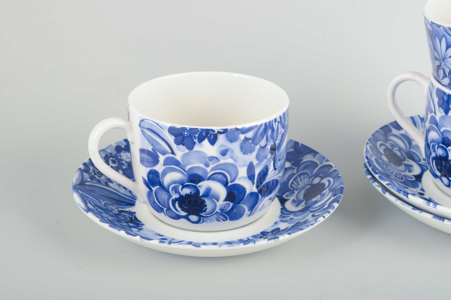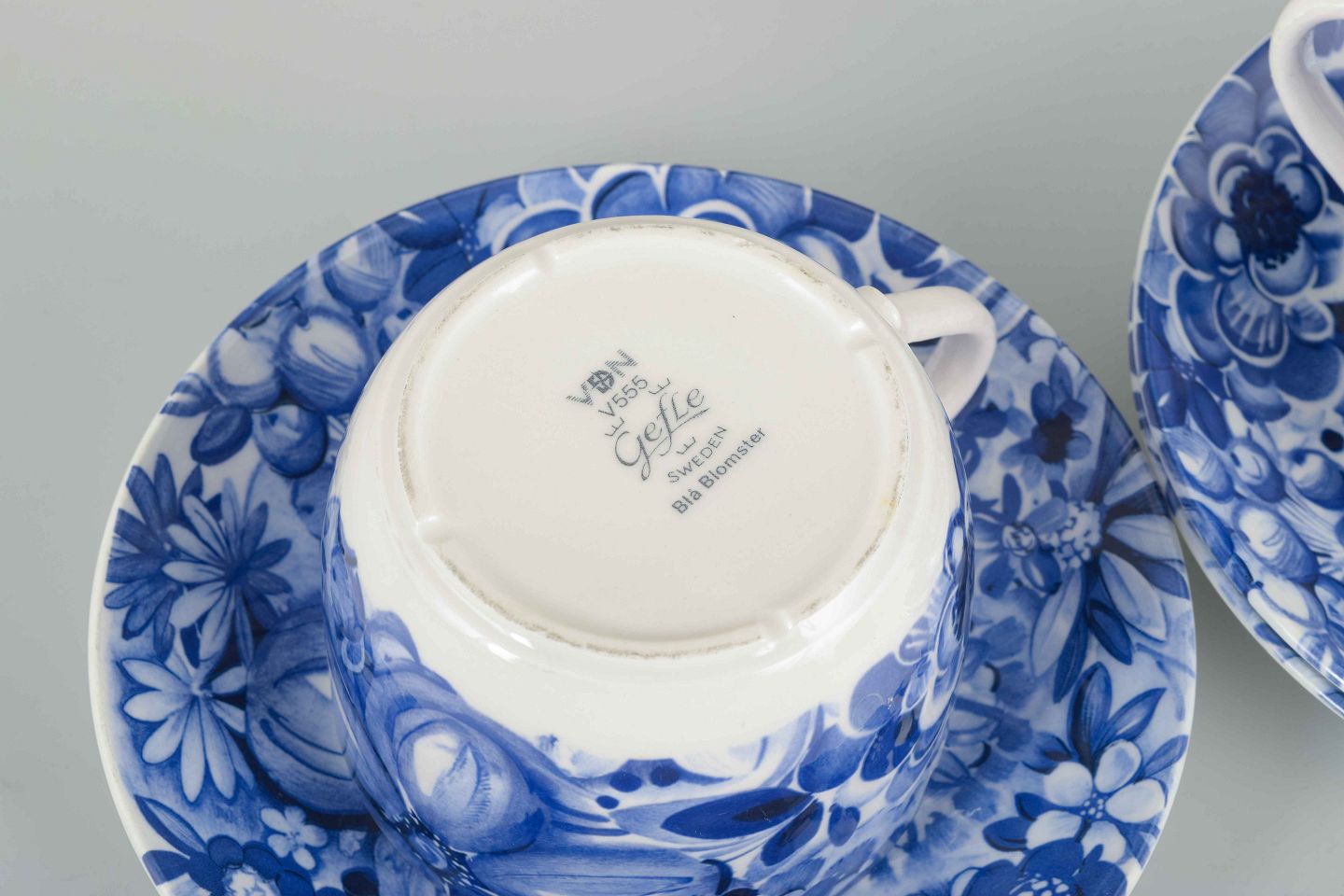 Gefle, "Blå Blomster"3 tea cups with saucers, mid-century.