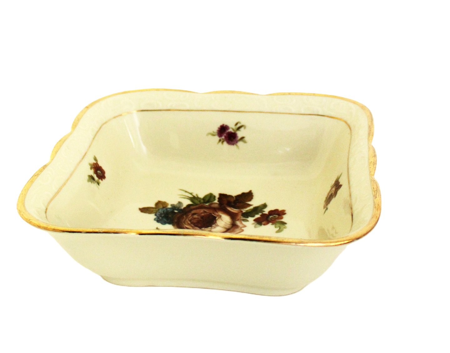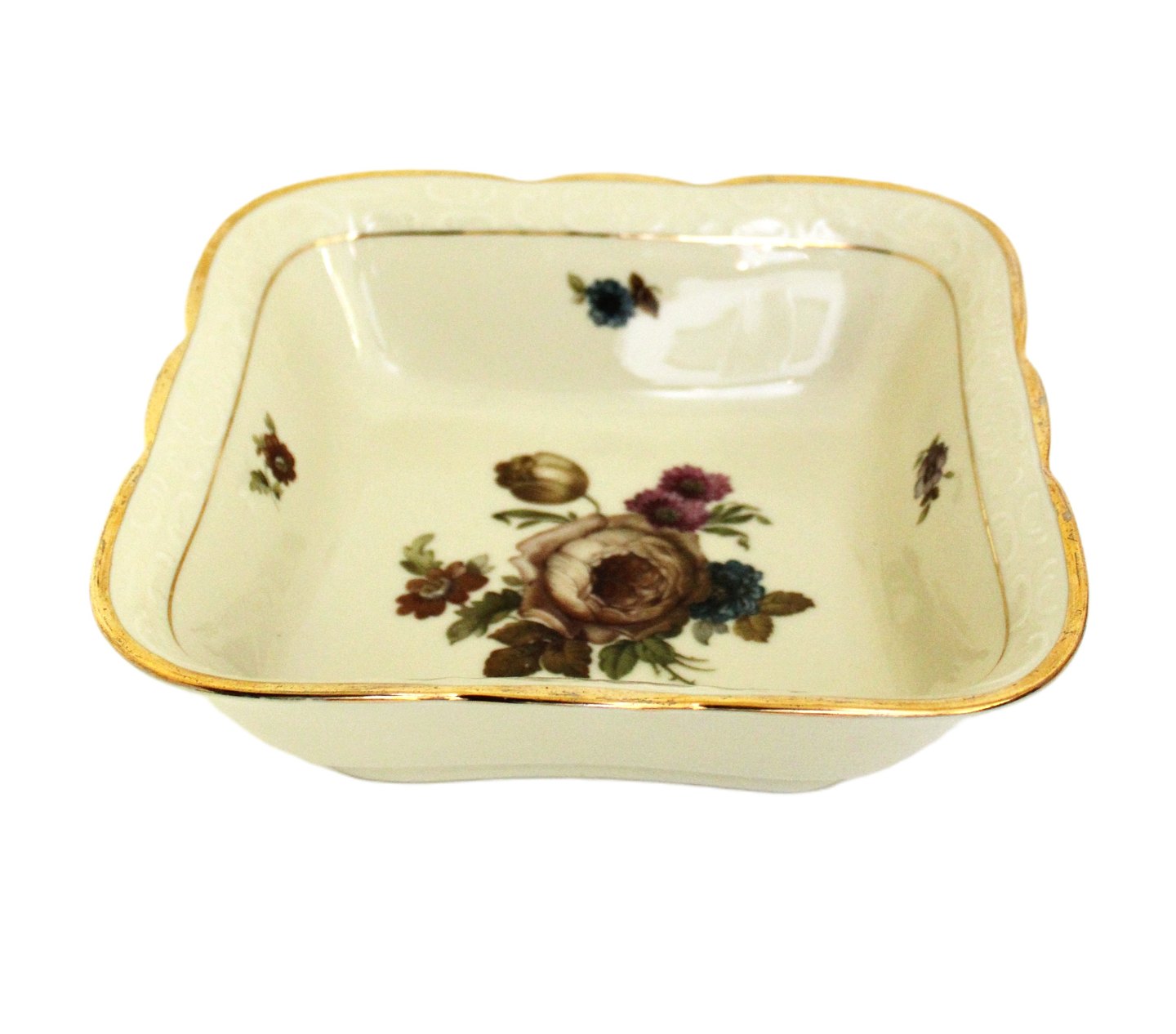 Kjøbenhavns Porcellains Maleri, Rosenborg, Kartoffelskål. Højde 6,5 cm. 21,5 cm. x 21,5 cm. Lettere slitage på yderste guldkant. Pris: 150 kr. stk. Lager: 2