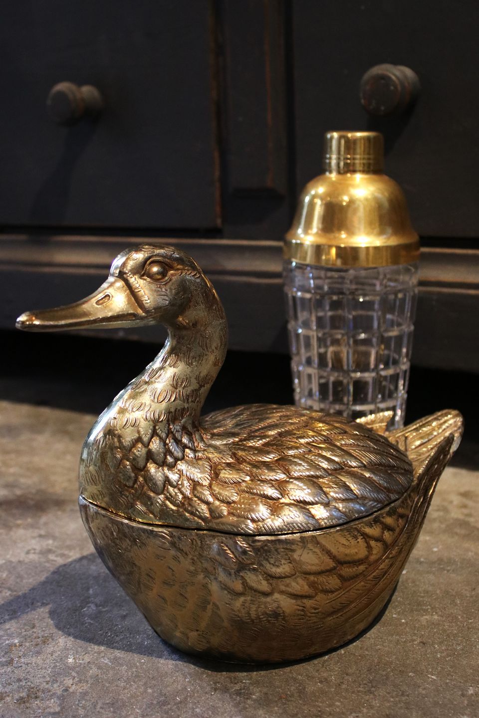 Lækker Italiensk isspand designet af Mauro Manetti i form af en and i forgyldt tin fra 60érne.