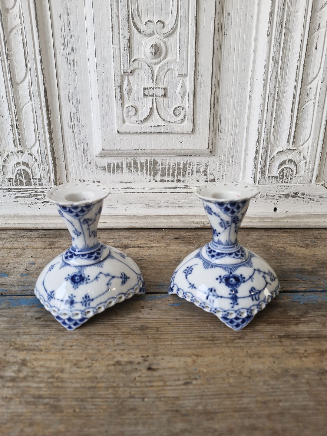 Royal Copenhagen Musselmalet helblonde par lysestager no. 1138