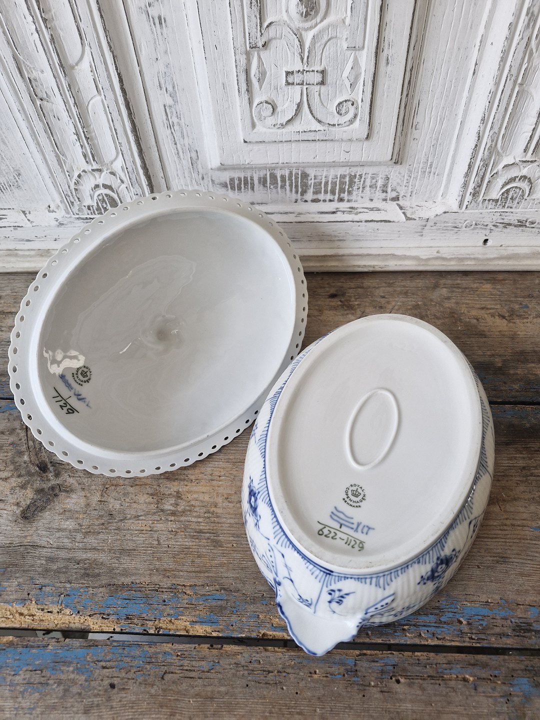Royal Copenhagen Musselmalet helblonde lågfad No. 1129, 2. sortering