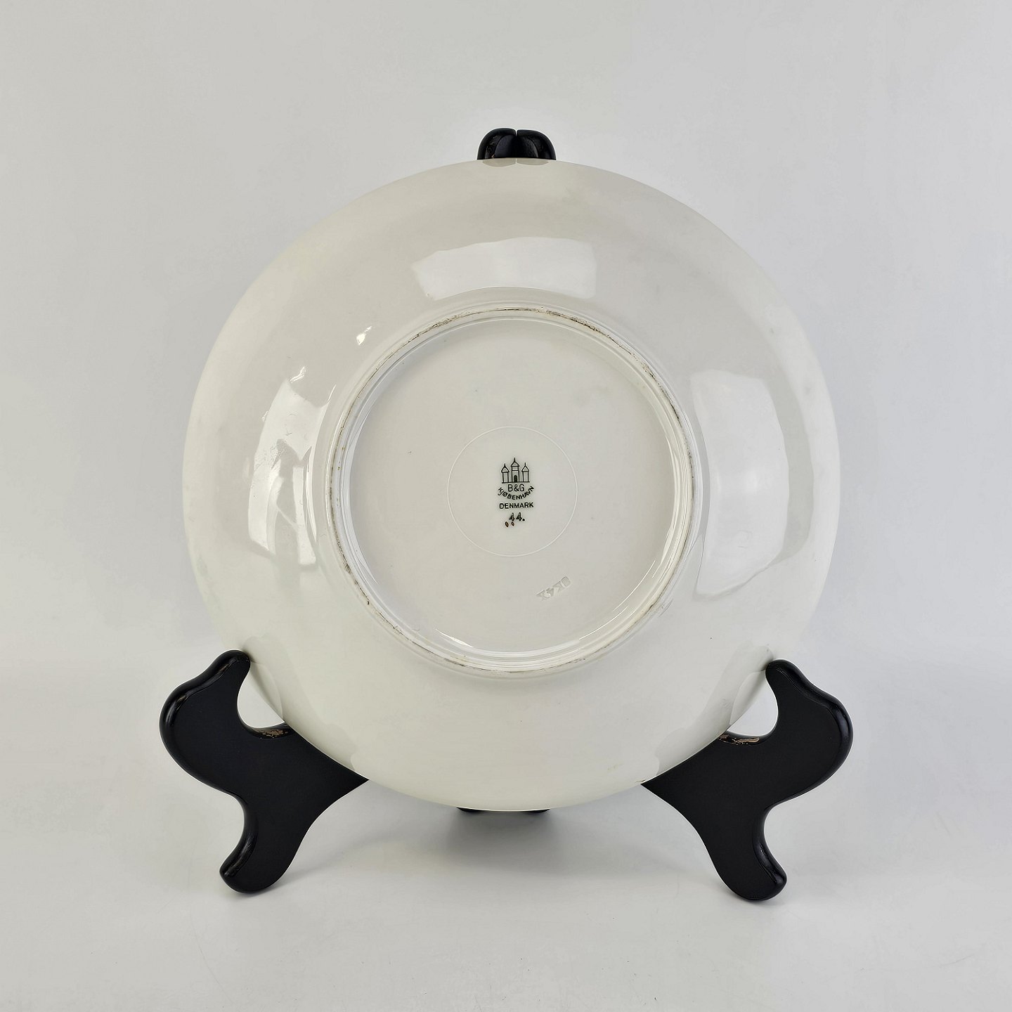 Kaktus er cremefarvet porcelæn i skælform, dekoreret med kaktusblomster og guldkant