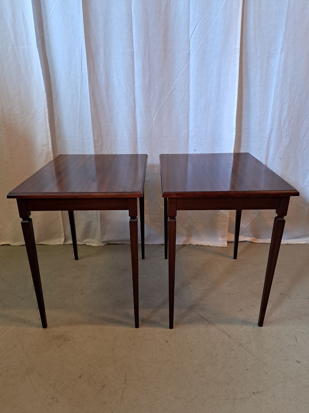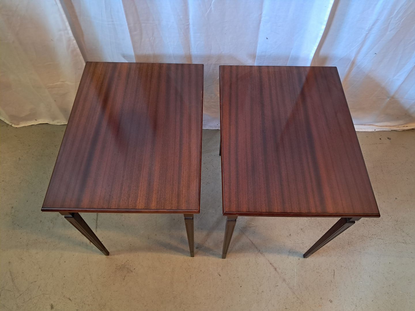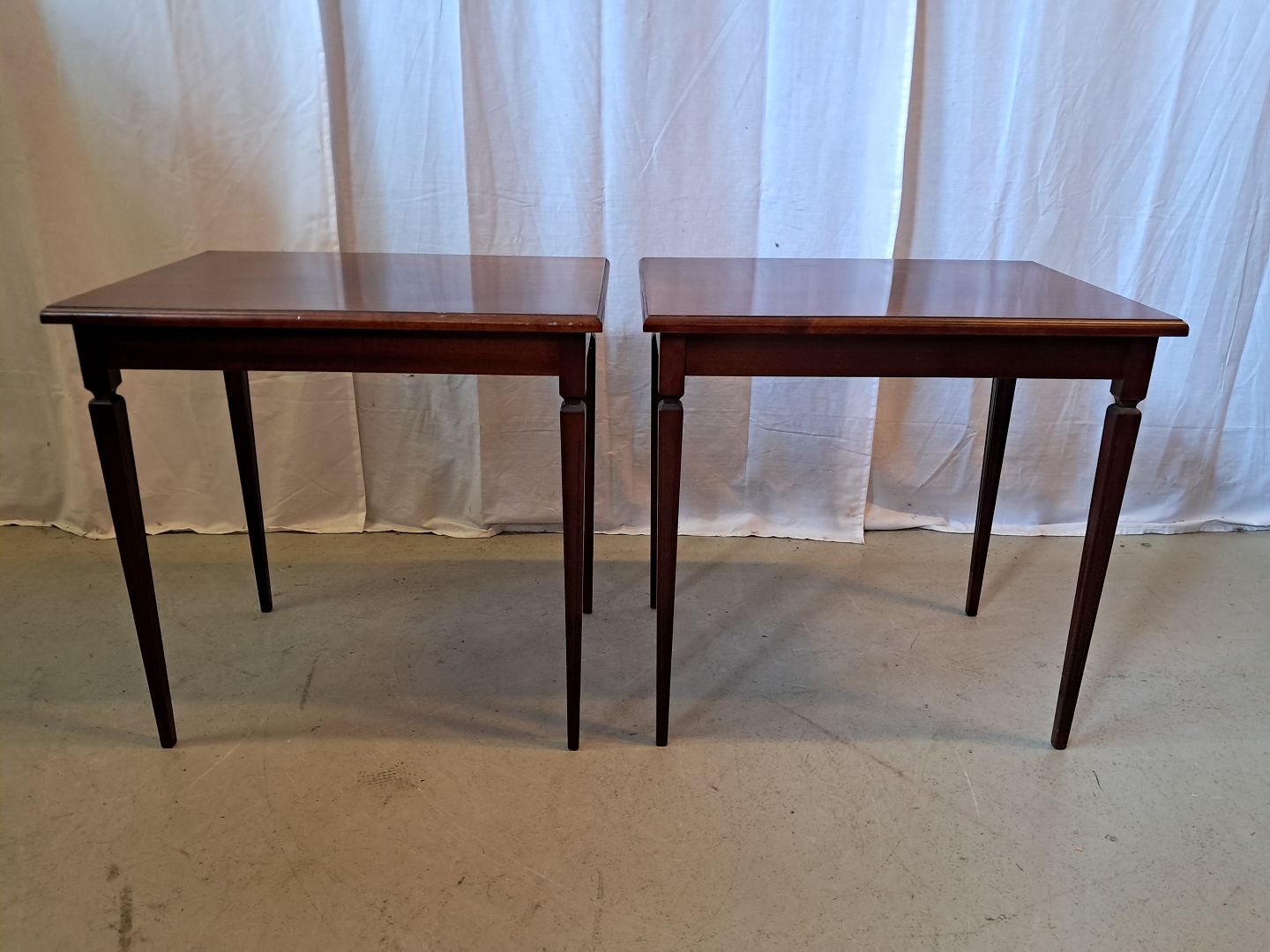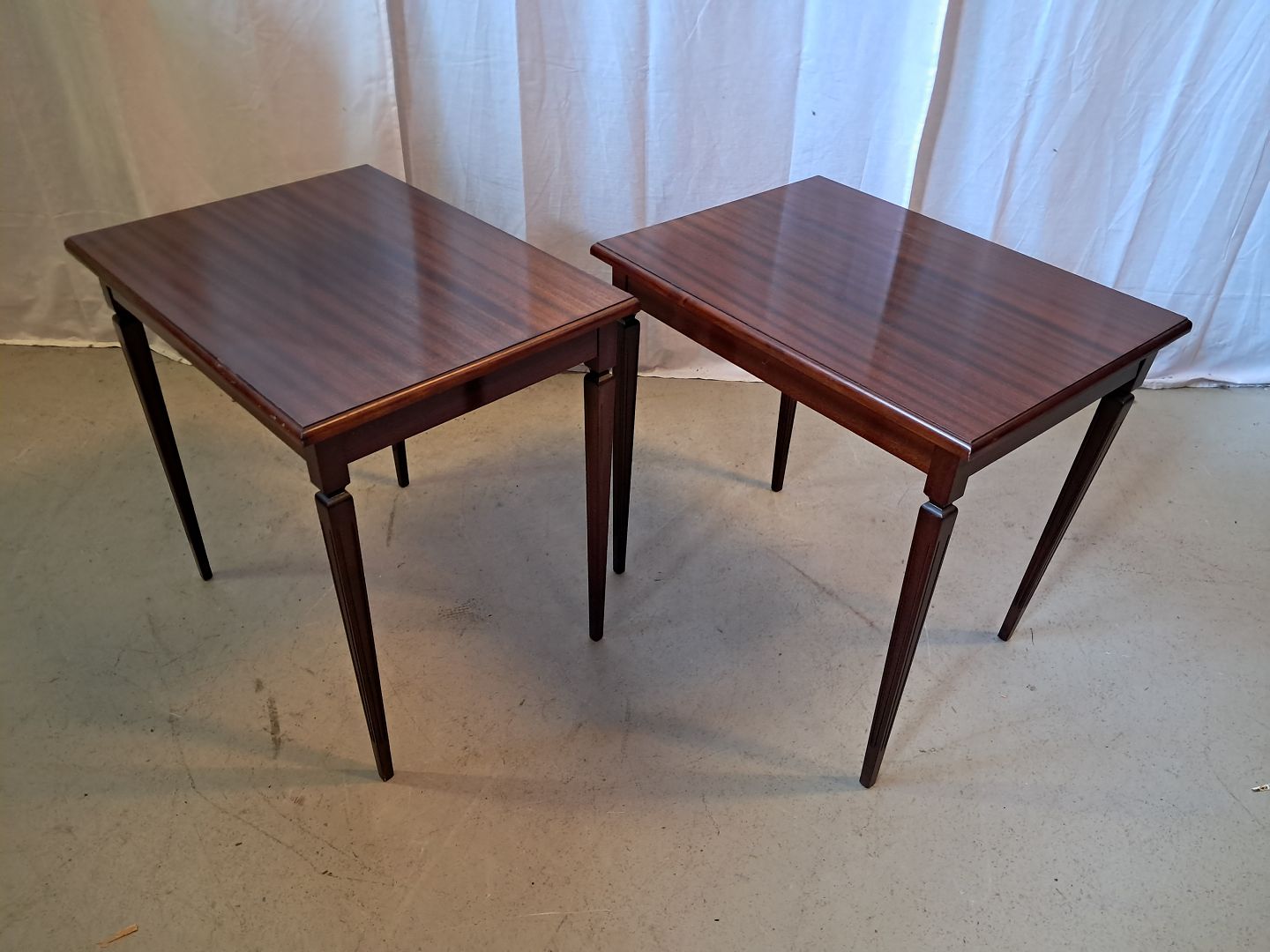 2 Sideborde i fineret mahogni, fra 1980erne.De har brugsspor.