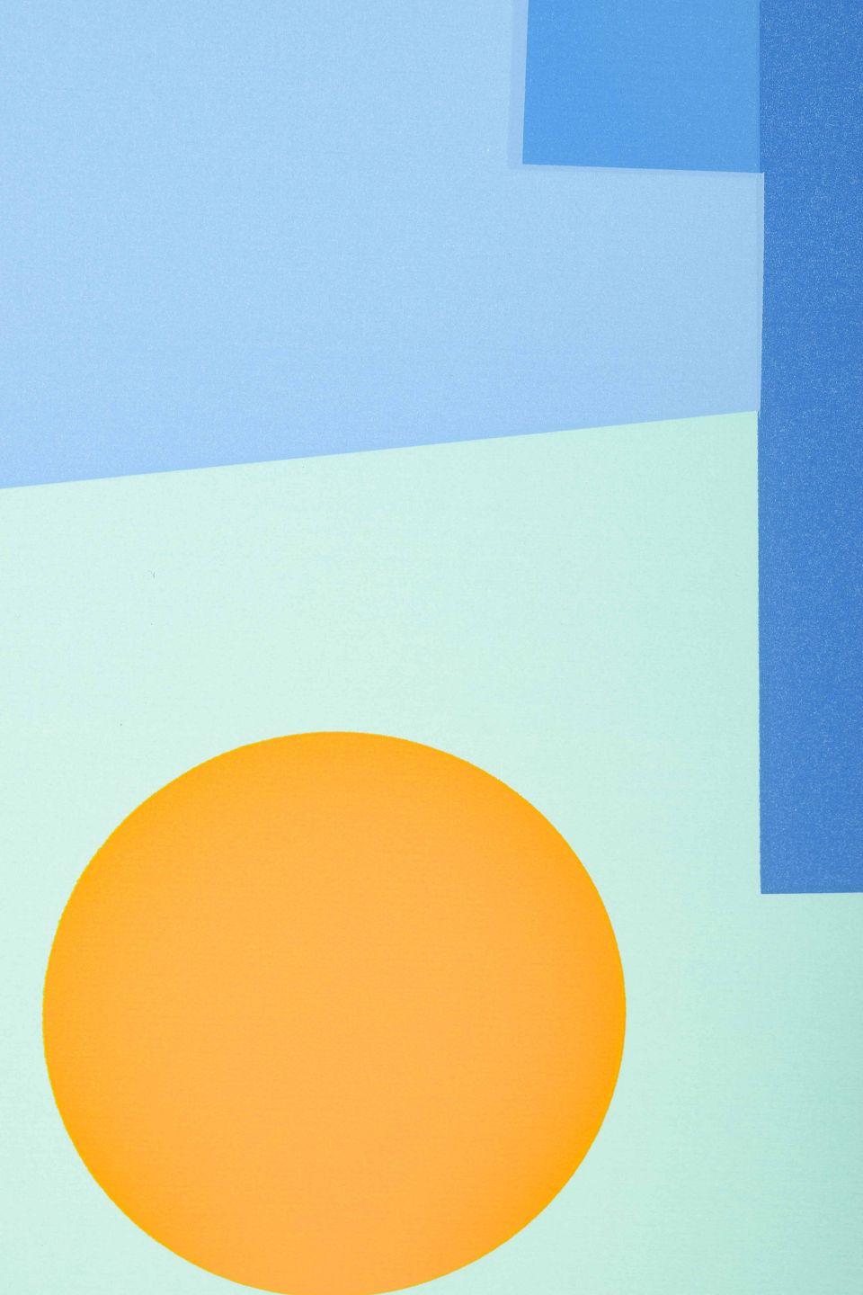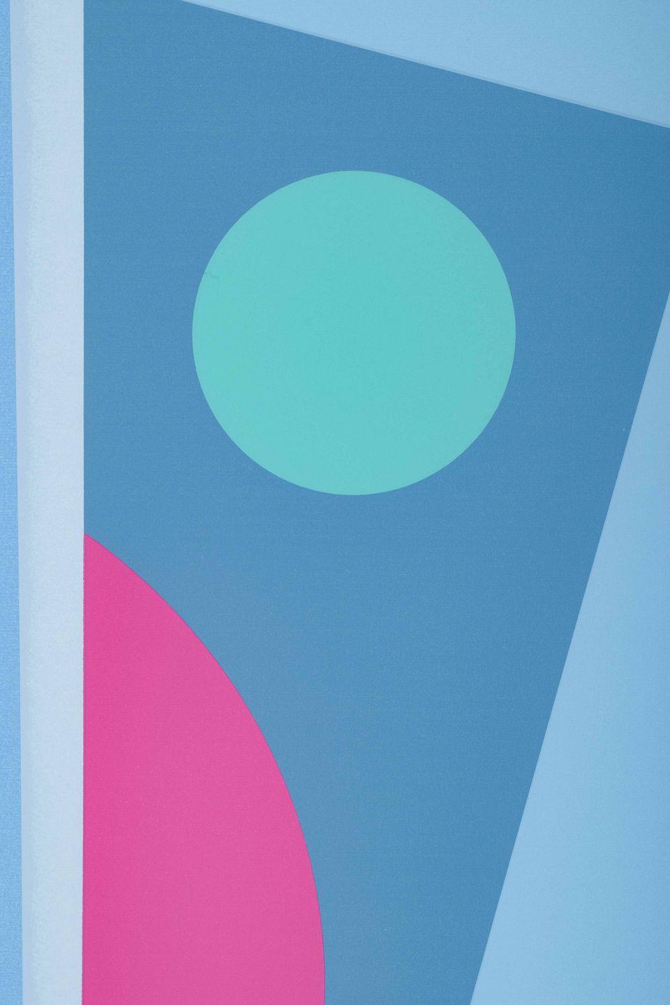 Et koloristisk og geometrisk abstrakt værk med klare, skarpe former og stærke farvekontraster i blå, pink, grøn og orange. De rene flader og præcise kompositioner fremhæver Kragh-Jacobsens interesse for det konstruktive og det formale billedsprog, hvor farven i sig selv bliver det bærende element.