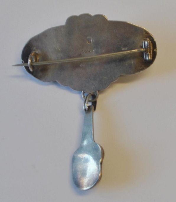 Dänische Jugendstilbrosche aus Silber mit Bernstein, 20. Jahrhundert. Hans Jensen & Co, Kopenhagen (nach 1928). Dekor in Form von Blattwerk. Gestempelt mit 830 und Meistermarken. B.: 5 cm. H.: 5 cm.Bestellnummer: 28325