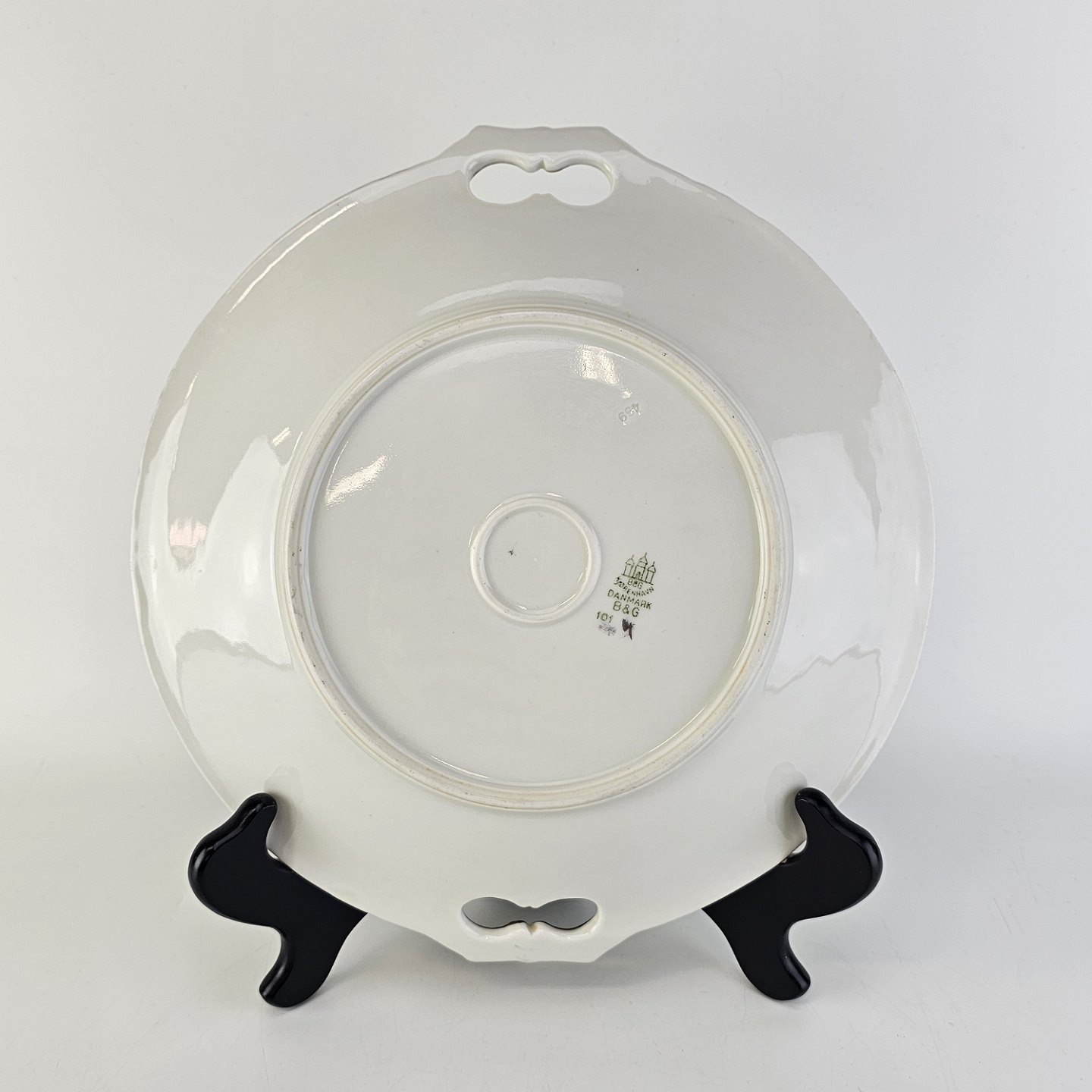 Rundt fad med håndtag i porcelæn fra stellet BalderNr. 101